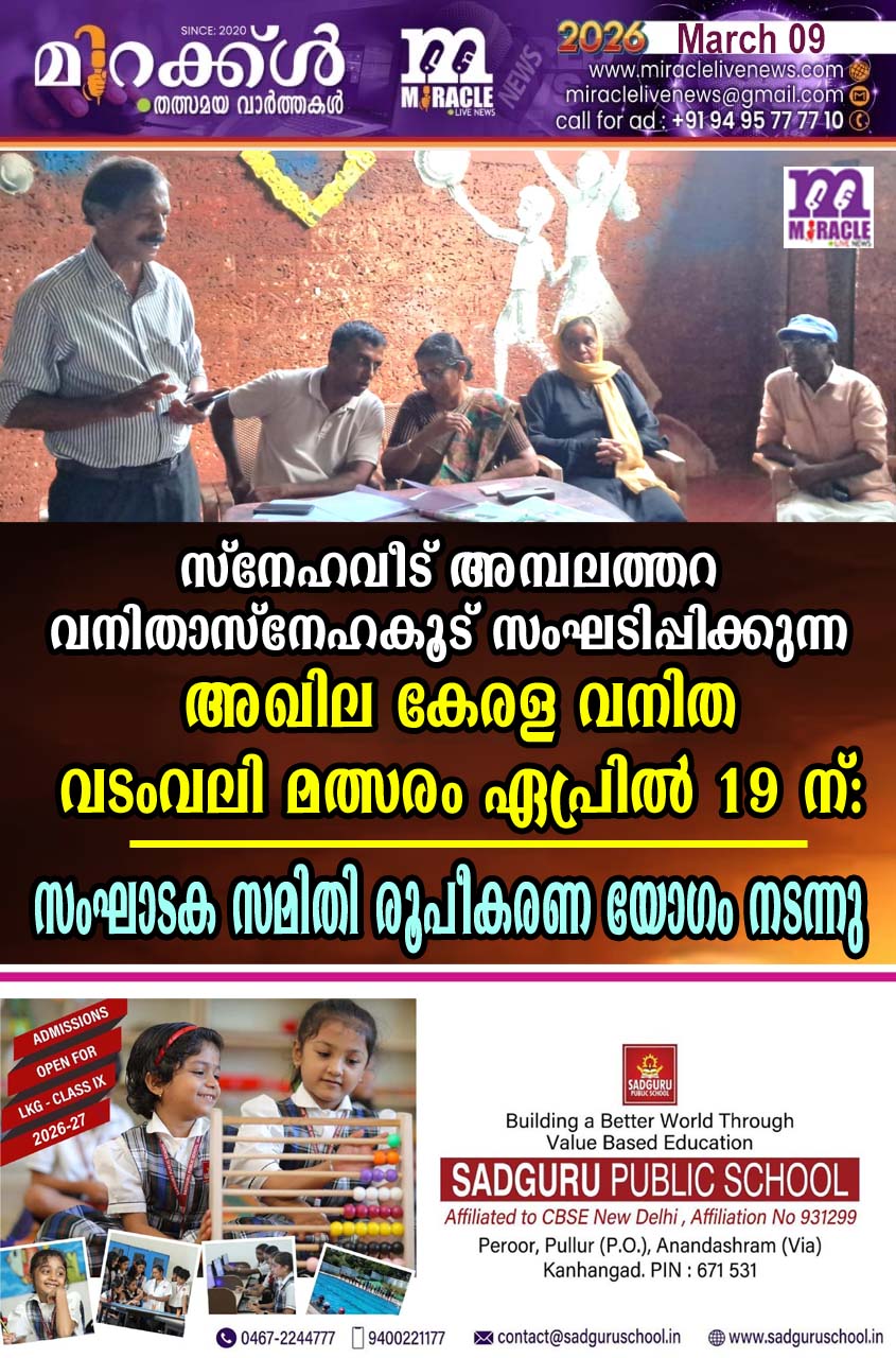സ്നേഹവീട് അമ്പലത്തറ വനിതാസ്നേഹകൂട് സംഘടിപ്പിക്കുന്ന അഖില കേരള വനിത വടംവലി മത്സരം ഏപ്രില് 19 ന്: സംഘാടക സമിതി രൂപീകരണ യോഗം നടന്നു