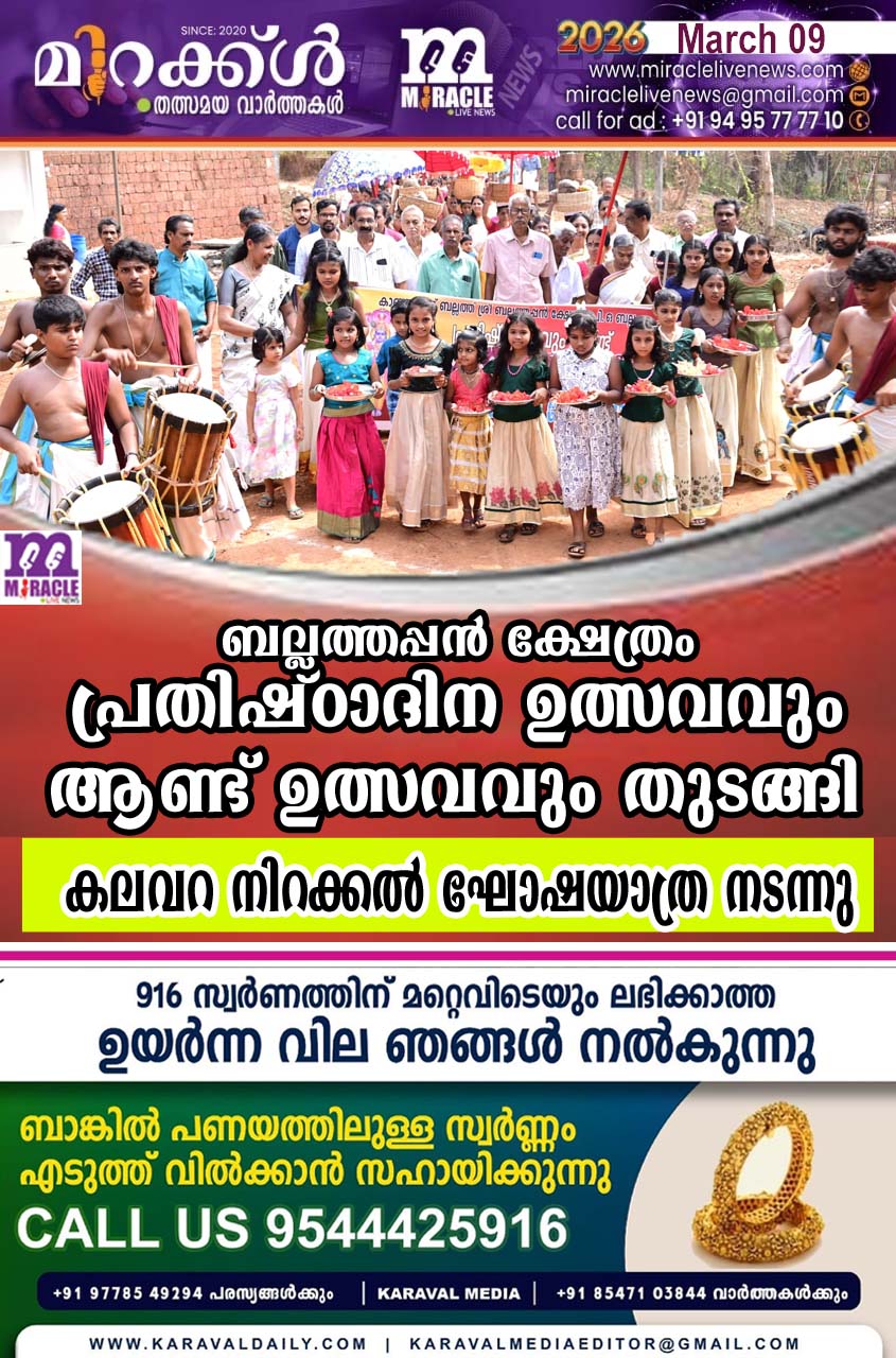 ബല്ലത്തപ്പന് ക്ഷേത്രം പ്രതിഷ്ഠാദിന ഉത്സവവും ആണ്ട് ഉത്സവവും തുടങ്ങി; കലവറ നിറക്കല് ഘോഷയാത്ര നടന്നു