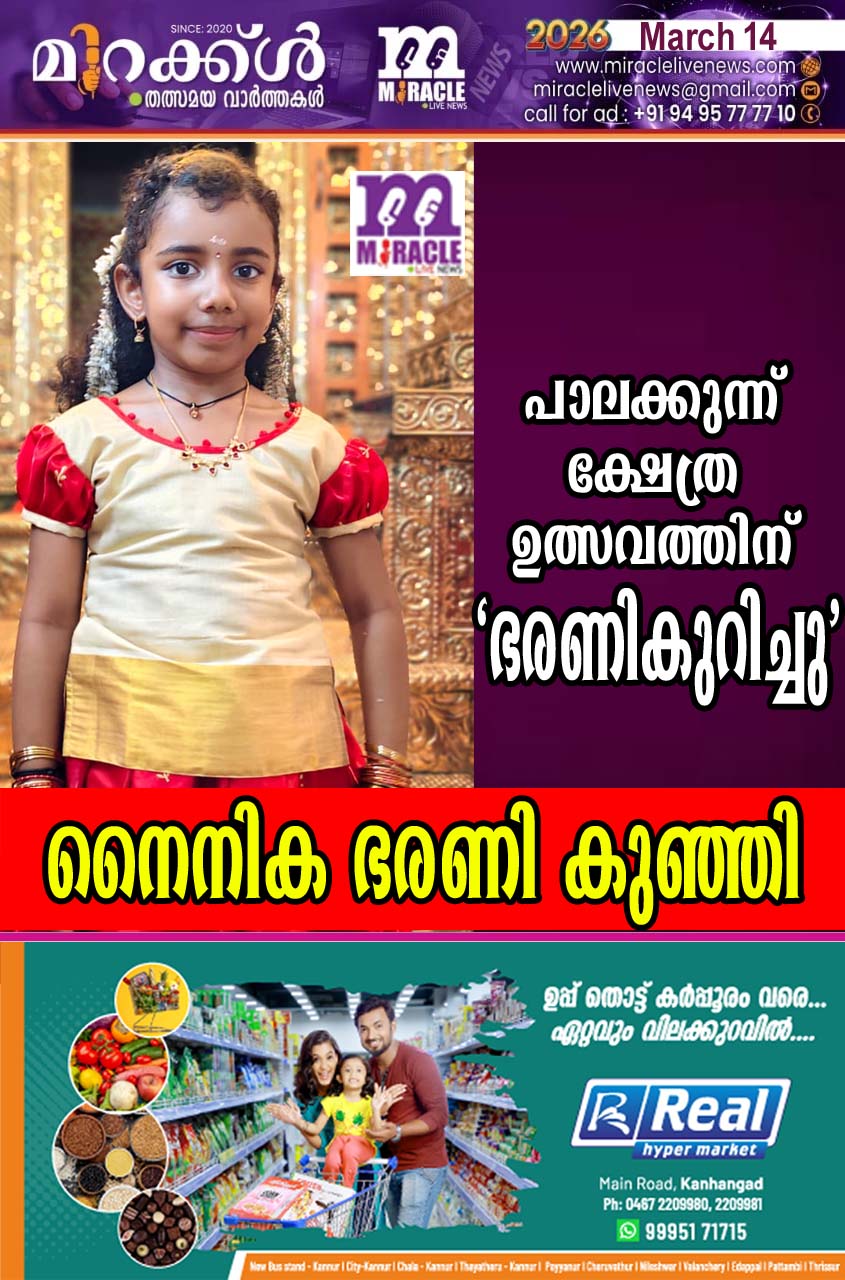 പാലക്കുന്ന് : പാലക്കുന്ന് കഴകം ഭഗവതി ക്ഷേത്രത്തിലെ ഭരണി ഉത്സവത്തിന് ഭണ്ഡാര വീട് കന്നികൊട്ടിലില് 'ഭരണികുറിക്കല്' ചടങ്ങ് നടന്നു. തുടര്ന്ന് പടിഞ്ഞാറ്റയില് ഭരണികുഞ്ഞിയെ നിശ്ചയിക്കുന്ന ചടങ്ങും നടന്നു. ഉദുമ പടിഞ്ഞാര് അംബിക നഗര് വാഴുന്നോര് വളപ്പില് 'അത്തംചിത്തിര' യില് എന്. കെ.…