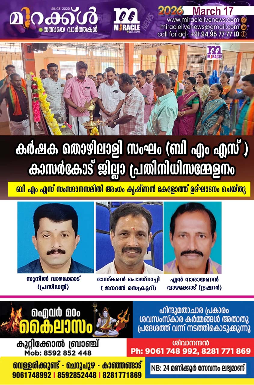 More Newsകേരള സീനിയര് സിറ്റിസണ്സ് ഫോറം ജില്ലാ കമ്മിറ്റി സംഘടന ക്ലാസ്സും ആദരവും സംഘടിപ്പിച്ചു