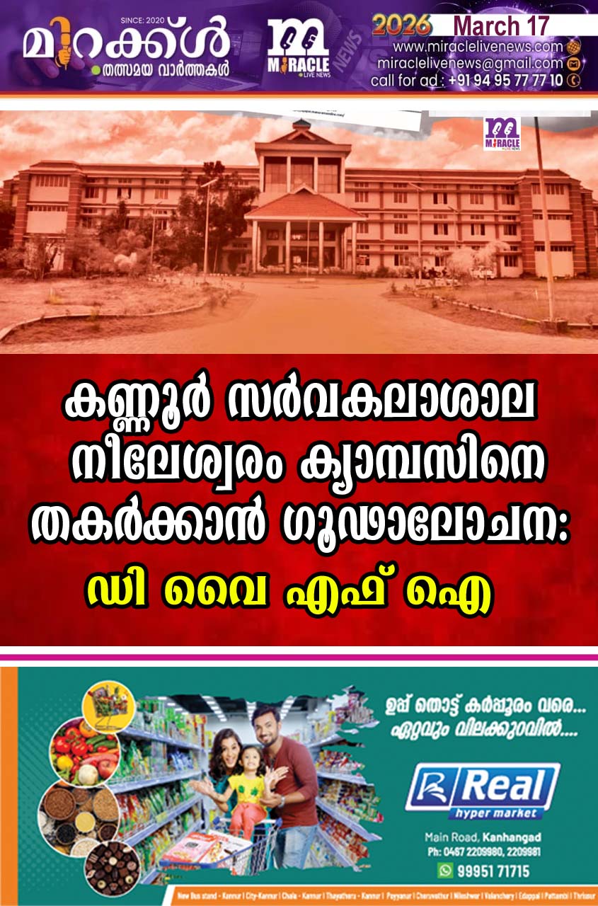 കണ്ണൂര് സര്വകലാശാല നീലേശ്വരം ക്യാമ്പസിനെ തകര്ക്കാന് ഗൂഢാലോചന: ഡി വൈ എഫ് ഐ