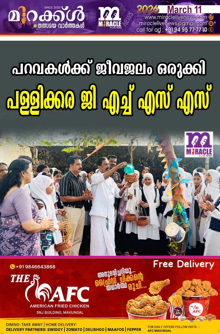 പറവകള്ക്ക് ജീവജലം ഒരുക്കി പള്ളിക്കര ജി എച്ച് എസ് എസ്