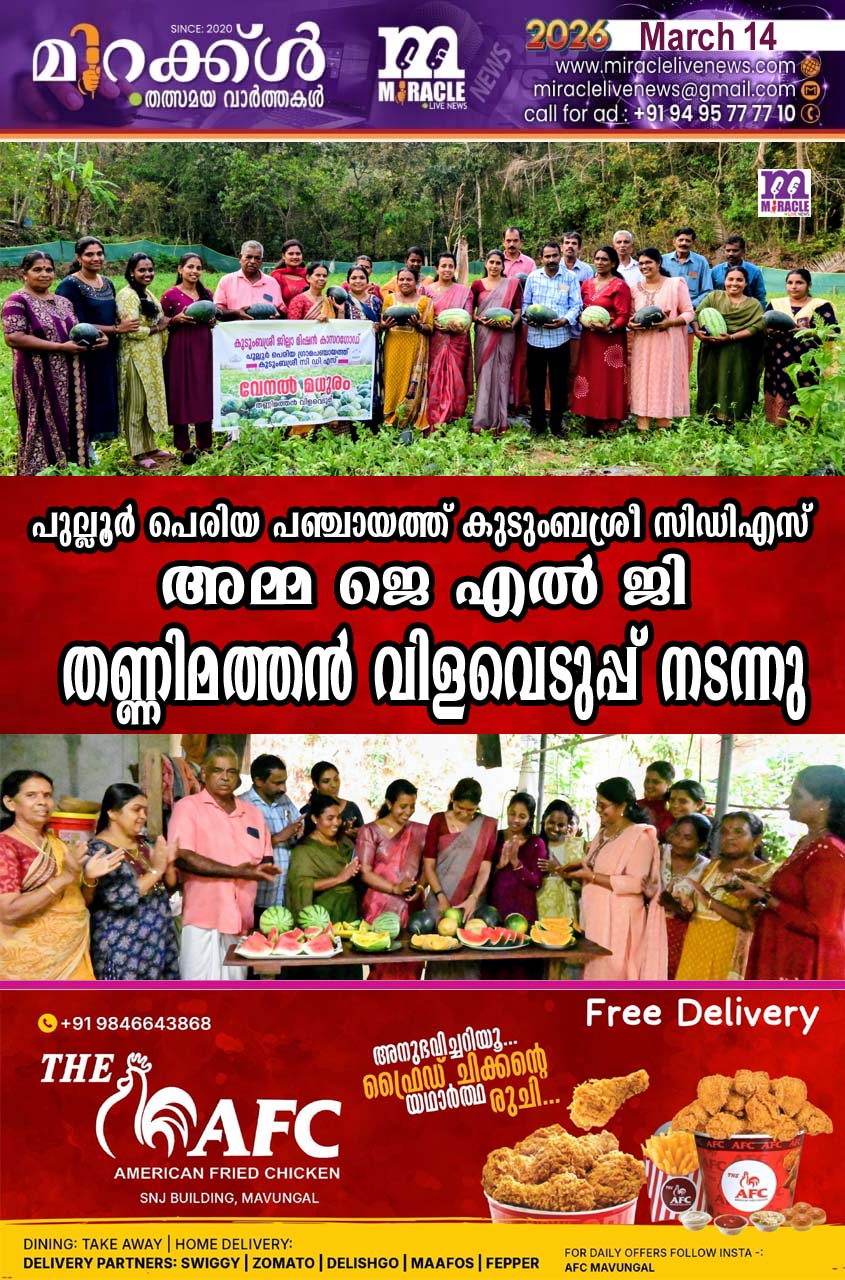 പുല്ലൂര് പെരിയ പഞ്ചായത്ത് കുടുംബശ്രീ സിഡിഎസ് അമ്മ ജെ എല് ജി തണ്ണിമത്തന് വിളവെടുപ്പ് നടന്നു