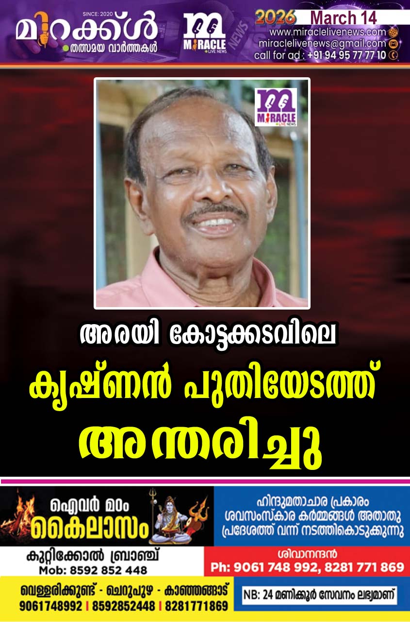 അരയി കോട്ടക്കടവിലെ കൃഷ്ണന് പുതിയേടത്ത് അന്തരിച്ചു