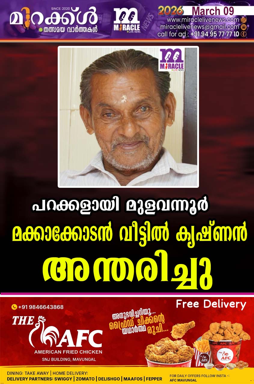 പറക്കളായി മുളവന്നൂര് മക്കാക്കോടന് വീട്ടില് കൃഷ്ണന് അന്തരിച്ചു