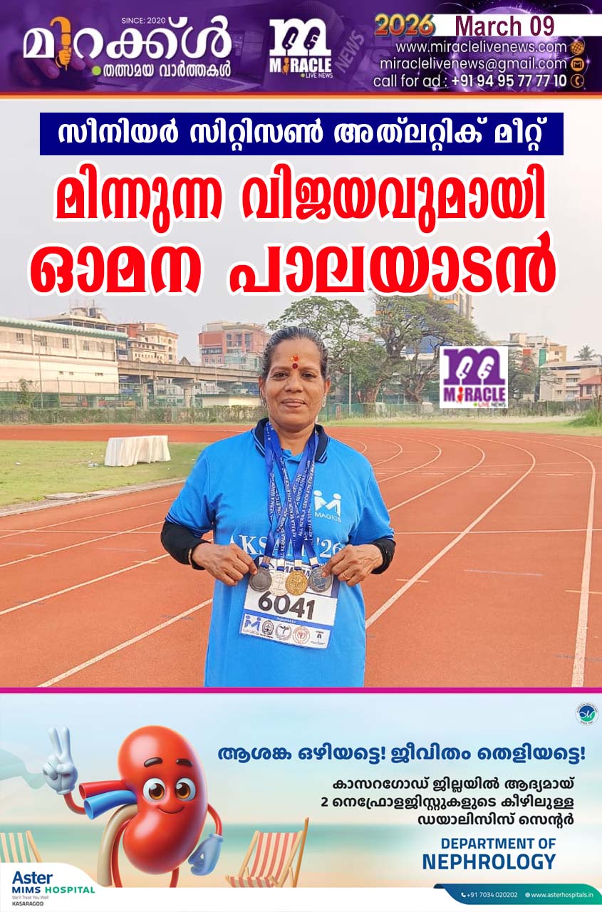 സീനിയര് സിറ്റിസണ് അത്ലറ്റിക് മീറ്റ്: മിന്നുന്ന വിജയവുമായി ഓമന പാലയാടന്
