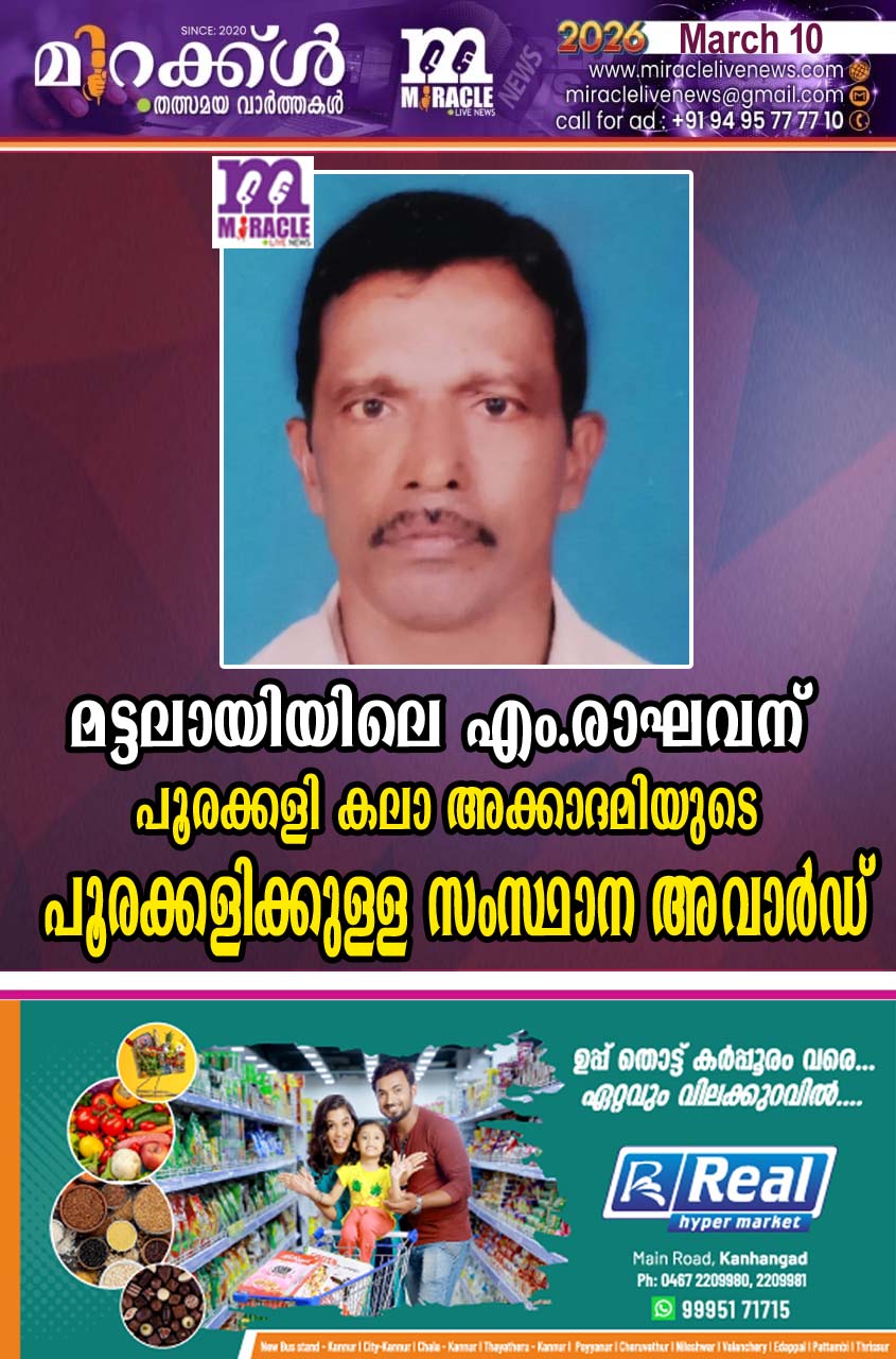 പളളിക്കര : ഗ്രാമപഞ്ചായത്ത് ഐ.സി.ഡി.എസ് ,കുടുംബശ്രീ സി.ഡി.എസ് എന്നിവയുടെ സഹകരണത്തോടെ പളളിക്കര റെഡ്മൂണ് ബീച്ചില് സുകൃതം 2025 എന്ന പേരില്സംഘടിപ്പിച്ച വയോജന സംഗമം പരിപാടി സി.എച്ച്.കുഞ്ഞമ്പു എം.എല്.എ ഉദ്ഘാടനം ചെയ്തു. പഞ്ചായത്ത് പ്രസിഡന്റ് എം.കുമാരന് അദ്ധ്യക്ഷത വഹിച്ചു. സിനിമ നാടക പ്രവര്ത്തകന്…