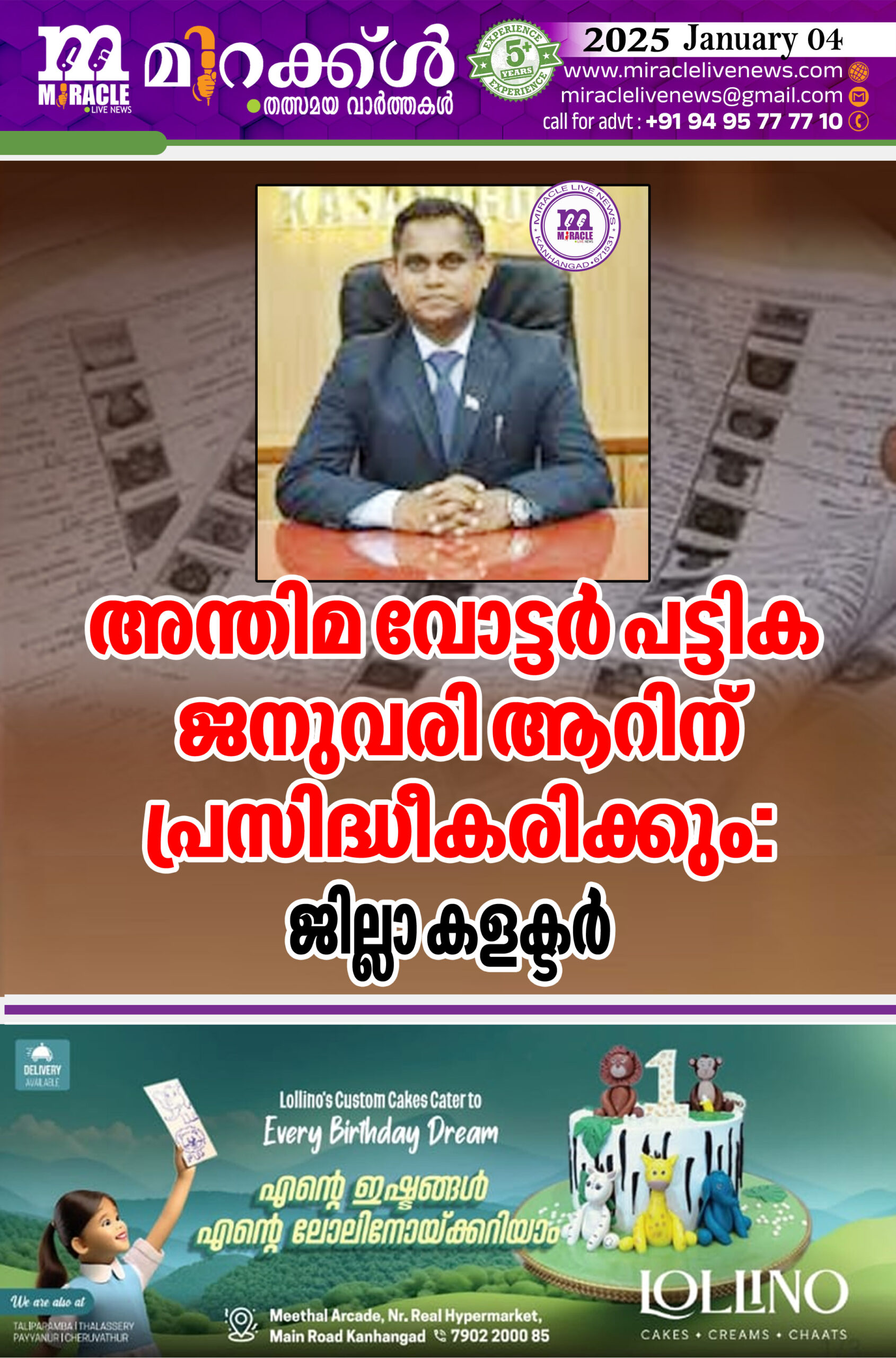 അന്തിമ വോട്ടര് പട്ടിക ജനുവരി ആറിന് പ്രസിദ്ധീകരിക്കും: ജില്ലാ കളക്ടര്