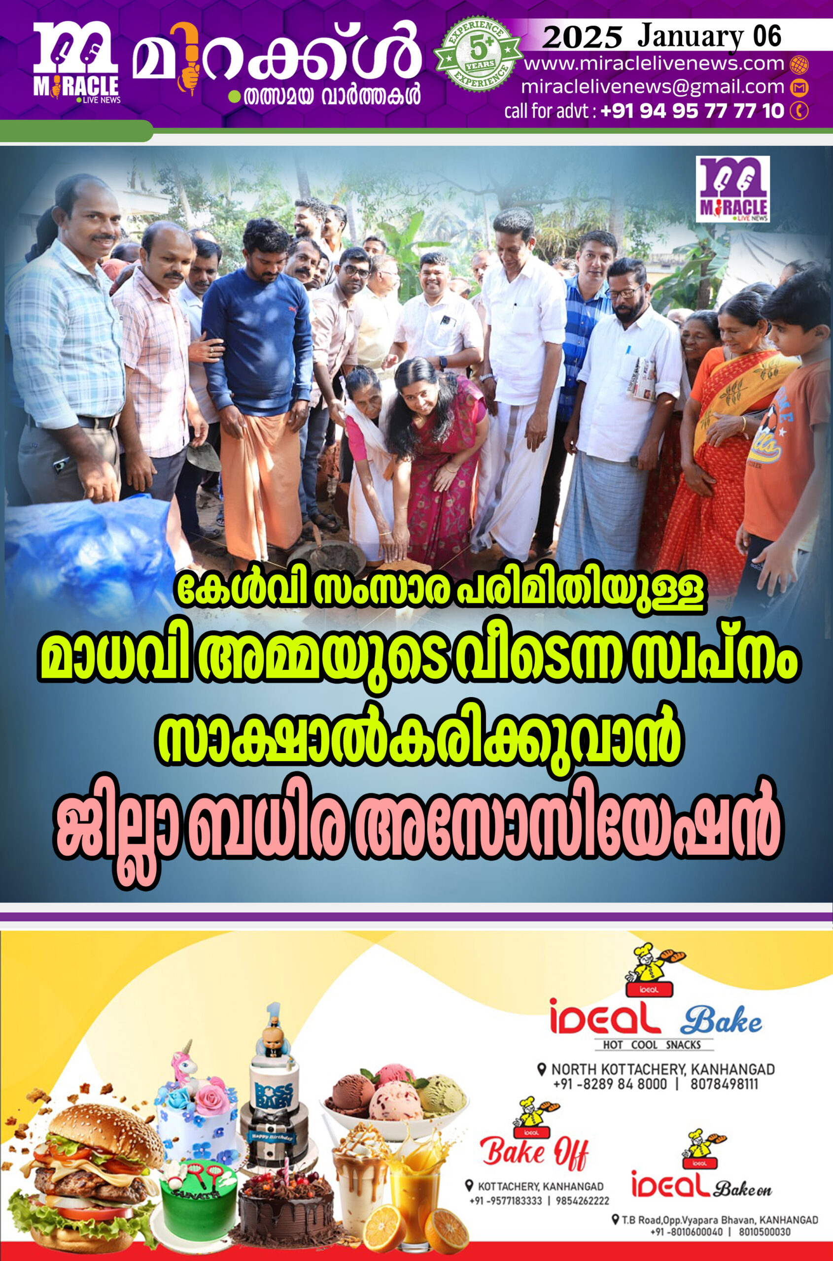 കാഞ്ഞങ്ങാട് : മുറിയനാവിയിലെ 65 വയസുള്ള കെ മാധവി അമ്മയുടെ വീടെന്ന സ്വപ്നം സാക്ഷാല്കരിക്കുന്നു. ജന്മനാ കേള്വി സംസാര പരിമിതിയുള്ള മാധവി അമ്മക്ക് വീട് നിര്മിച്ച് നല്കുന്നത് കാസര്കോട് ജില്ലയിലെ കേള്വി -സംസാര പരിമിതരുടെ സംഘടനയായ കാസര്കോട് ജില്ലാ ബധിര അസോസിയേഷനാണ്. അവിവാഹിതയായ മാധവി അമ്മ മാതാപിതാക്കളോടൊപ്പം ആയിരുന്നു താമസിച്ചിരുന്നത്. മാതാപിതാക്കളുടെ മരണശേഷം തനിച്ചായി ജീവിതം.കേള്ക്കുവാനോ സംസാരിക്കുവാനോ സാധിക്കാത്ത മാധവി അമ്മ, ഏത് നിമിഷവും തകര്ന്നു വീഴുന്ന അവസ്ഥയിലുള്ള ചപ്പായിലാണ് താമസിച്ചു വന്നിരുന്നത്.ഒരു വീടിനുവേണ്ടി കയറിയിറങ്ങാത്ത ഓഫീസുകളോ സ്ഥാപനങ്ങളോ സമീപിക്കാത്ത വ്യക്തികളോ ഇല്ല. ആരും മാധവി അമ്മയുടെ സ്വരം കേട്ടില്ല. അവസാനം ബധിര അസോസിയേഷനില് അപേക്ഷയുമായി എത്തിയത്. ഇതറിഞ്ഞ സംസ്ഥാന അധ്യാപക അവാര്ഡ് ജേതാവ് കൂടിയായ, ബധിര അസോസിയേഷന് രക്ഷധികാരി കെ ടി ജോഷിമോന്റെ നേതൃത്വത്തില് മാധവി അമ്മയുടെ ഭവനം സന്ദര്ശിച്ചു. വളരെ പരിതാപകരമായ അവസ്ഥ ആണ് അവര്ക്ക് അവിടെ കാണുവാന് സാധിച്ചത്. വിണ്ടുകീറി ഏത് നിമിഷവും നിലംപതിക്കുമെന്ന അവസ്ഥയിലുള്ള കുടില്, ഉള്ളില് എലിയും പാമ്പും പൂച്ചയുമെല്ലാം ചേര്ന്ന് ഉണ്ടാക്കിയ വലിയ മാളങ്ങള്. ഇത് കണ്ട സക്കിര്, പവിത്രന്, മുഹമ്മദ് അമീന്, മുഹമ്മദ് റഷാദ്, ടി ടി സുനില് എന്നിവരടങ്ങിയ അസോസിയേഷന്റെ നേതൃത്വം ഒന്നടങ്കം മാധവി അമ്മക്ക് വീട് നിര്മിച്ചു നല്കുവാന് തീരുമാനിക്കുകയായിരുന്നു.