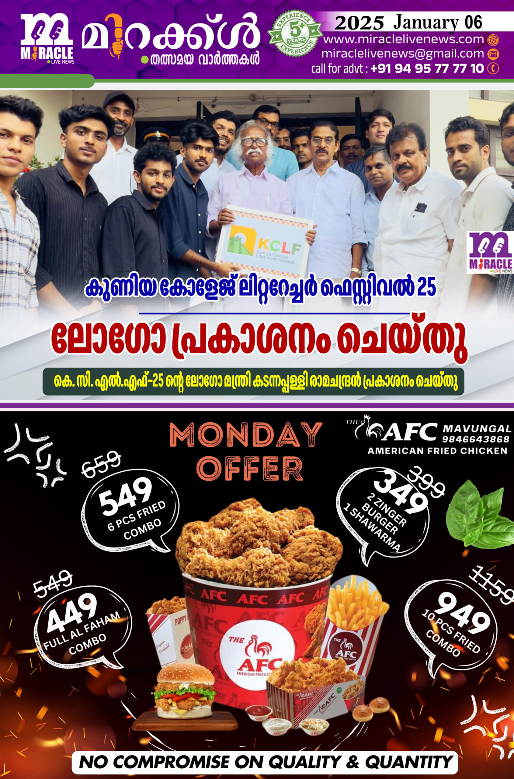 കുണിയ കോളേജ് ലിറ്ററേച്ചര് ഫെസ്റ്റിവല് 25 ; ലോഗോ പ്രകാശനം ചെയ്തു; കെ. സി. എല്.എഫ്-25 ന്റെ ലോഗോ മന്ത്രി കടന്നപ്പള്ളി രാമചന്ദ്രന് പ്രകാശനം ചെയ്തു