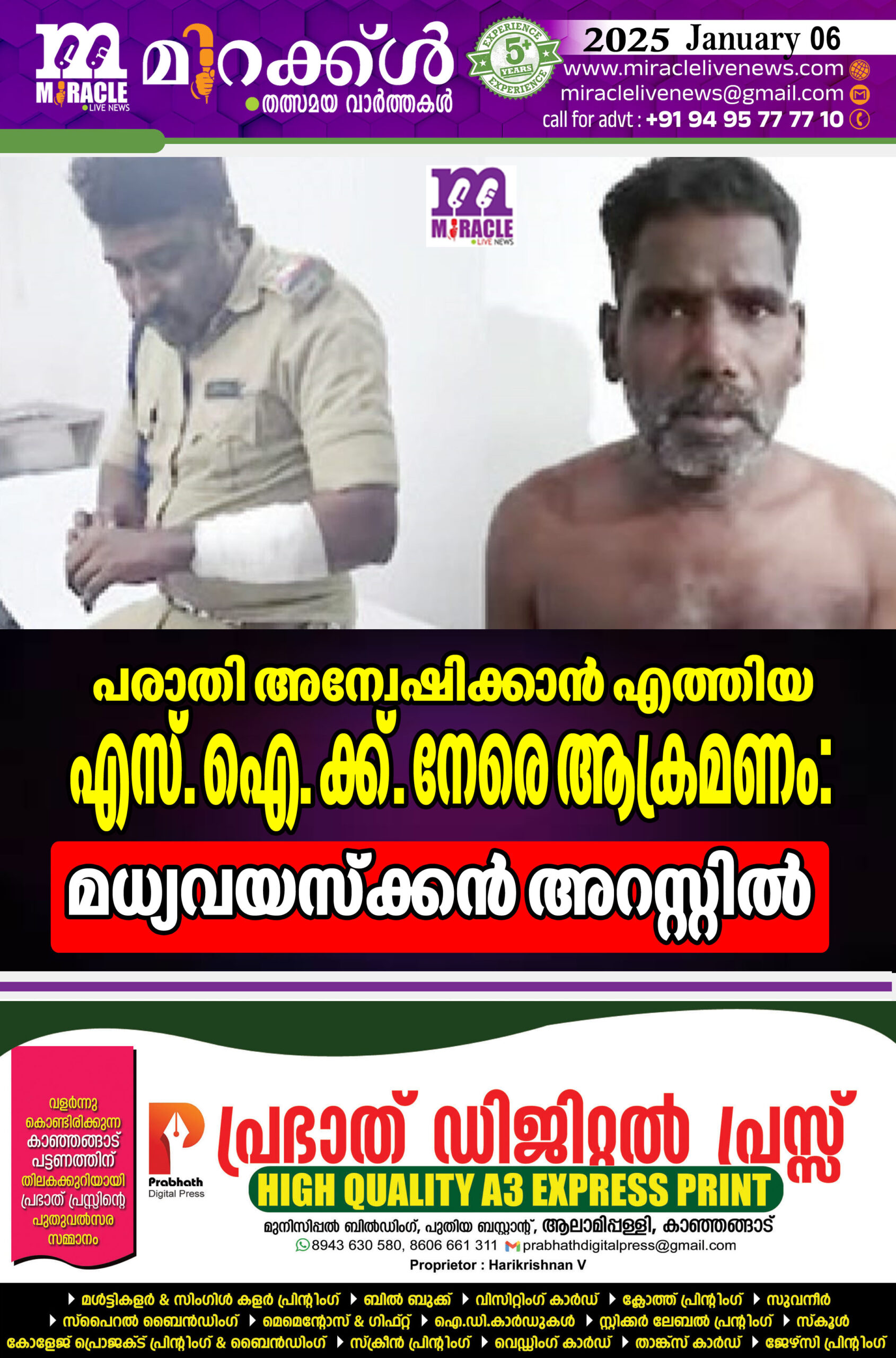 പരാതി അന്വേഷിക്കാന് എത്തിയ എസ്. ഐ. ക്ക്. നേരെ ആക്രമണം: മധ്യവയസ്ക്കന് അറസ്റ്റില്