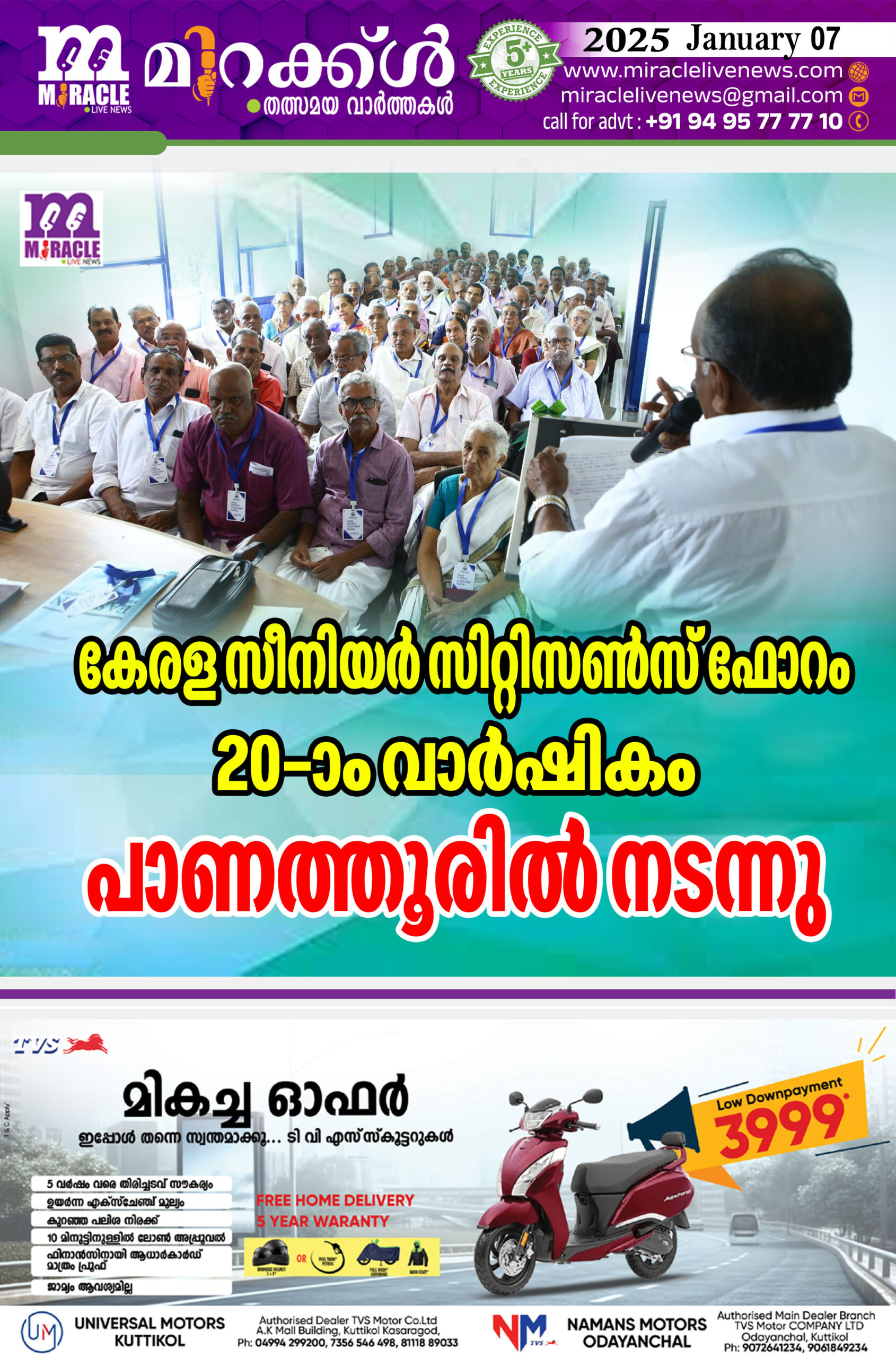 കേരള സീനിയര്‍ സിറ്റിസണ്‍സ് ഫോറം 20-ാം വാര്‍ഷികം പാണത്തൂരില്‍ നടന്നു