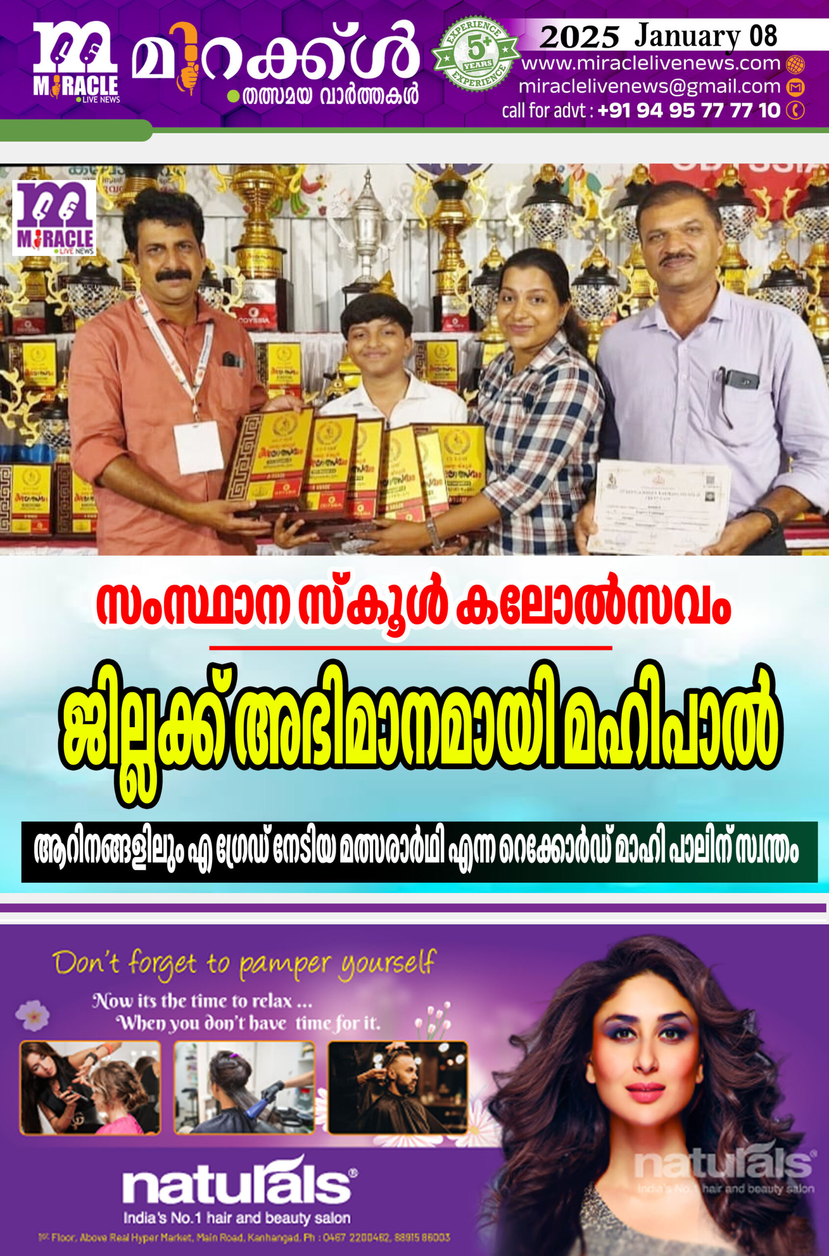സംസ്ഥാന കലോത്സവത്തില് മത്സരിച്ച എല്ലാ ഇനങ്ങളിലും എ ഗ്രേഡ് നേടിയ കാഞ്ഞങ്ങാട് സൗത്തിലെ മഹിപാലിന് ഇന്ന് വൈകുന്നേരം 4 മണിക്ക് സൗത്തില് സ്വീകരിച്ച്ആനയിക്കും