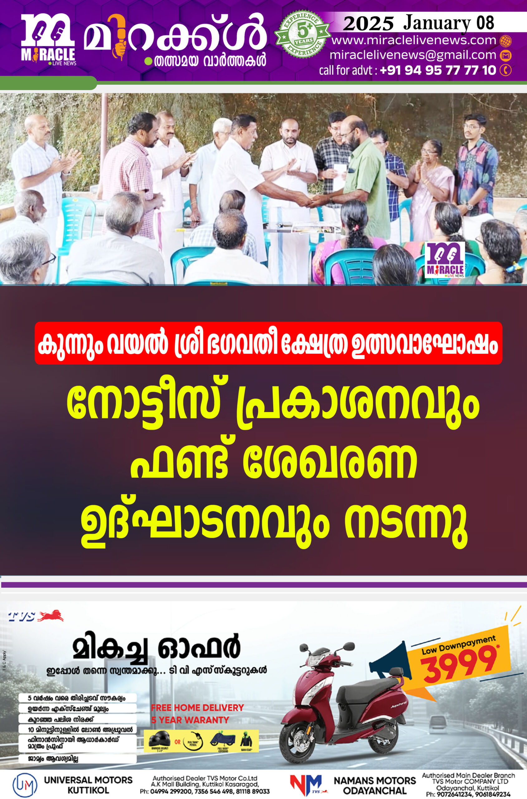 കുന്നും വയല് ശ്രീ ഭഗവതീ ക്ഷേത്ര ഉത്സവാഘോഷം : നോട്ടീസ് പ്രകാശനവും ഫണ്ട് ശേഖരണ ഉദ്ഘാടനവും നടന്നു