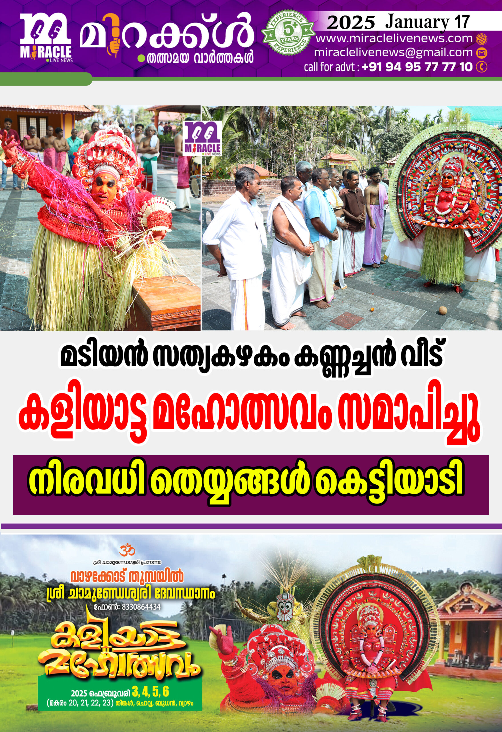 മടിയന് സത്യകഴകം കണ്ണച്ചന് വീട് കളിയാട്ട മഹോത്സവം സമാപിച്ചു; നിരവധി തെയ്യങ്ങള് കെട്ടിയാടി
