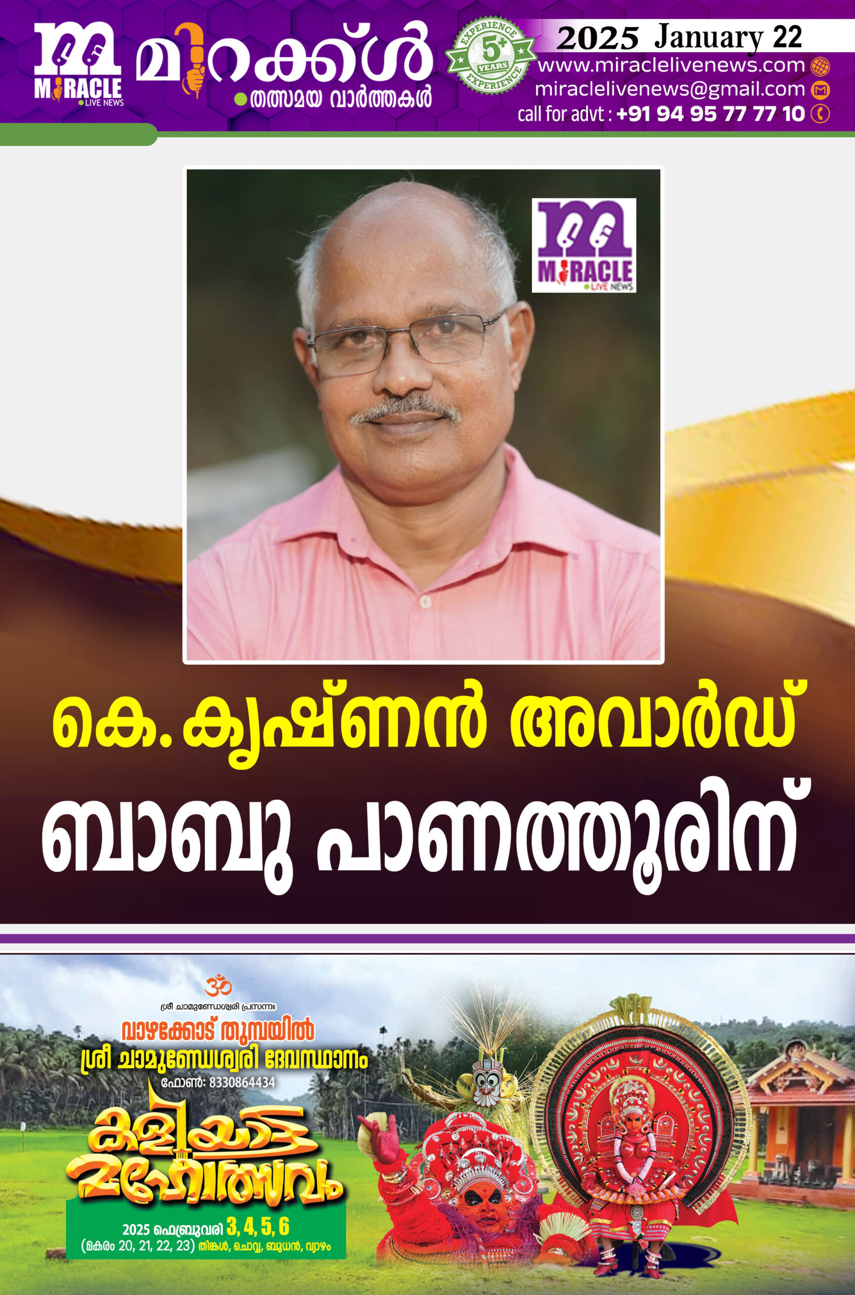 കെ.കൃഷ്ണന്‍ അവാര്‍ഡ് ബാബു പാണത്തൂരിന്