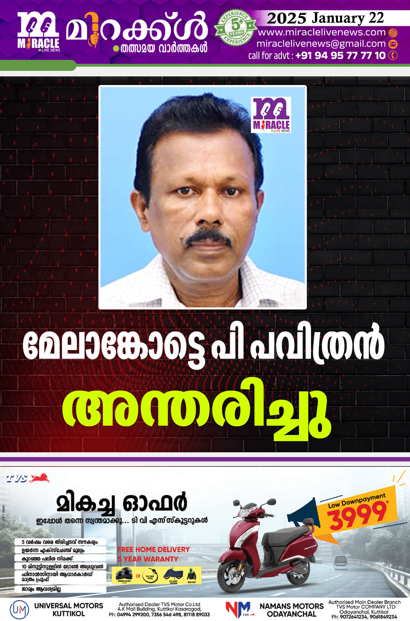 മേലാങ്കോട്ടെ പി പവിത്രന്‍ അന്തരിച്ചു