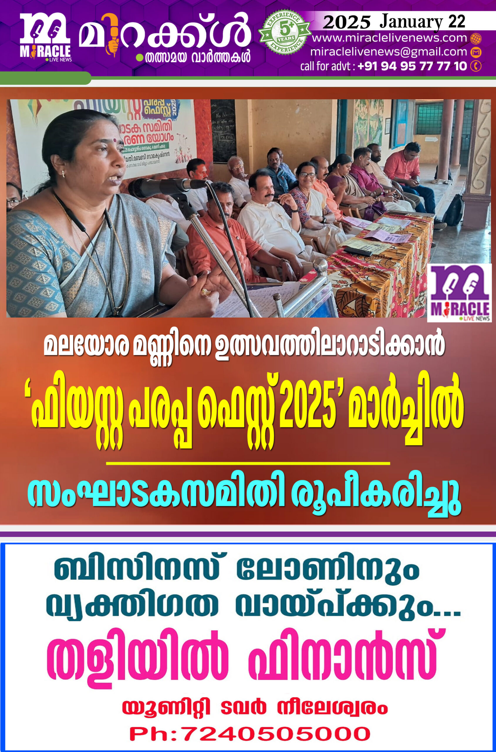 2025 മാര്ച്ച് 29 മുതല് ‘ഫിയസ്റ്റ പരപ്പ ഫെസ്റ്റ് 2025 ‘ എന്ന പേരില് സംഘടിപ്പിക്കുന്ന പരിപാടിയുടെ സംഘാടകസമിതി രൂപീകരണയോഗം പരപ്പ ഗവണ്മെന്റ് ഹയര് സെക്കന്ഡറി സ്കൂളില് പരപ്പ ബ്ലോക്ക് പഞ്ചായത്ത് പ്രസിഡണ്ട് എം. ലക്ഷ്മിയുടെ അധ്യക്ഷതയില് ജില്ലാ പഞ്ചായത്ത് പ്രസിഡണ്ട് ബേബി ബാലകൃഷ്ണന് ഉദ്ഘാടനം ചെയ്തു.