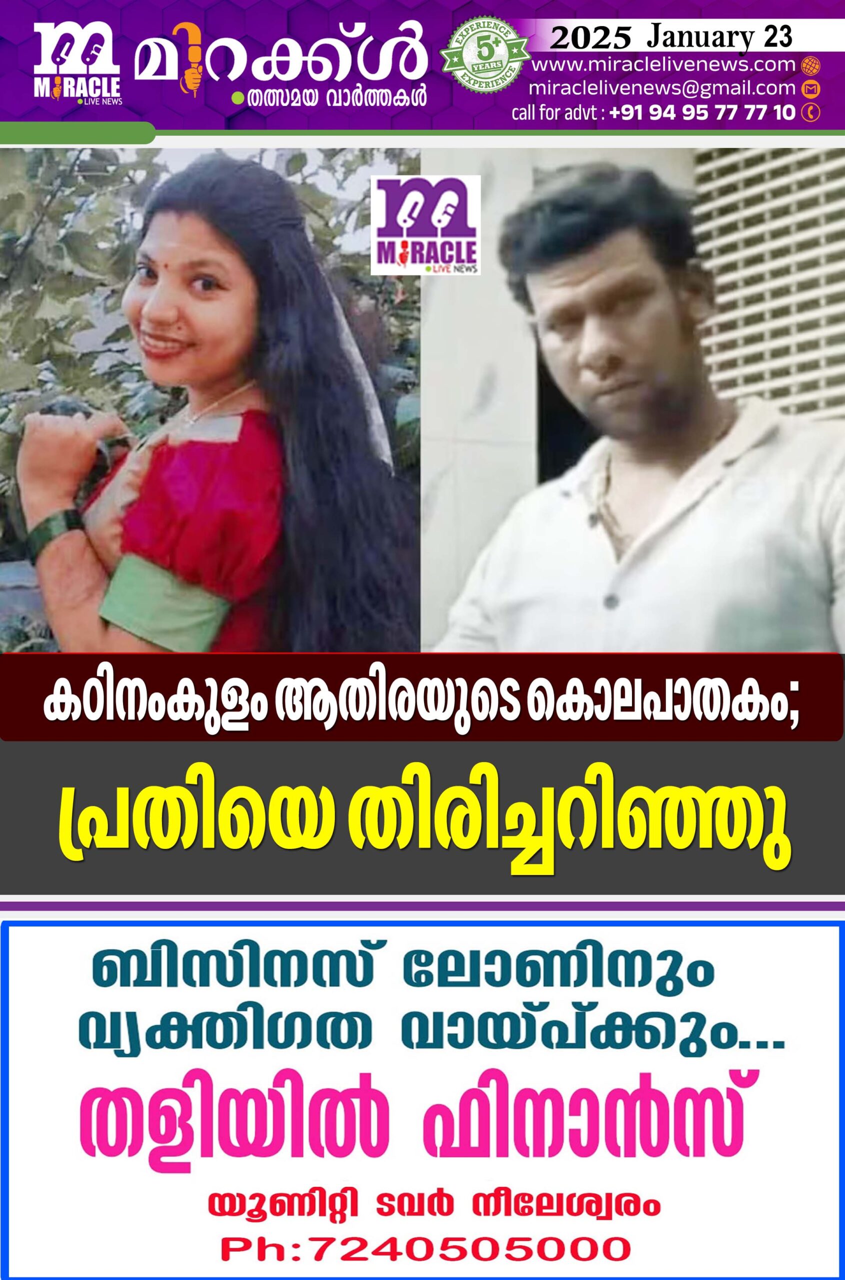 ആതിര ഇന്സ്റ്റ്ഗ്രാം വഴി പരിചയപ്പെട്ട എറണാകുളം ചെല്ലാനം സ്വദേശി ജോണ്സണ് ഔസേപ്പച്ചനാണ് പ്രതി .ഇന്നലെ രാവിലെ എട്ടരക്ക് ശേഷമാണ് ആതിര കൊല്ലപ്പെട്ടത്. ആതിരയുടെ സ്കൂട്ടറുമായി പ്രതി കടന്നുകളഞ്ഞിരുന്നു.