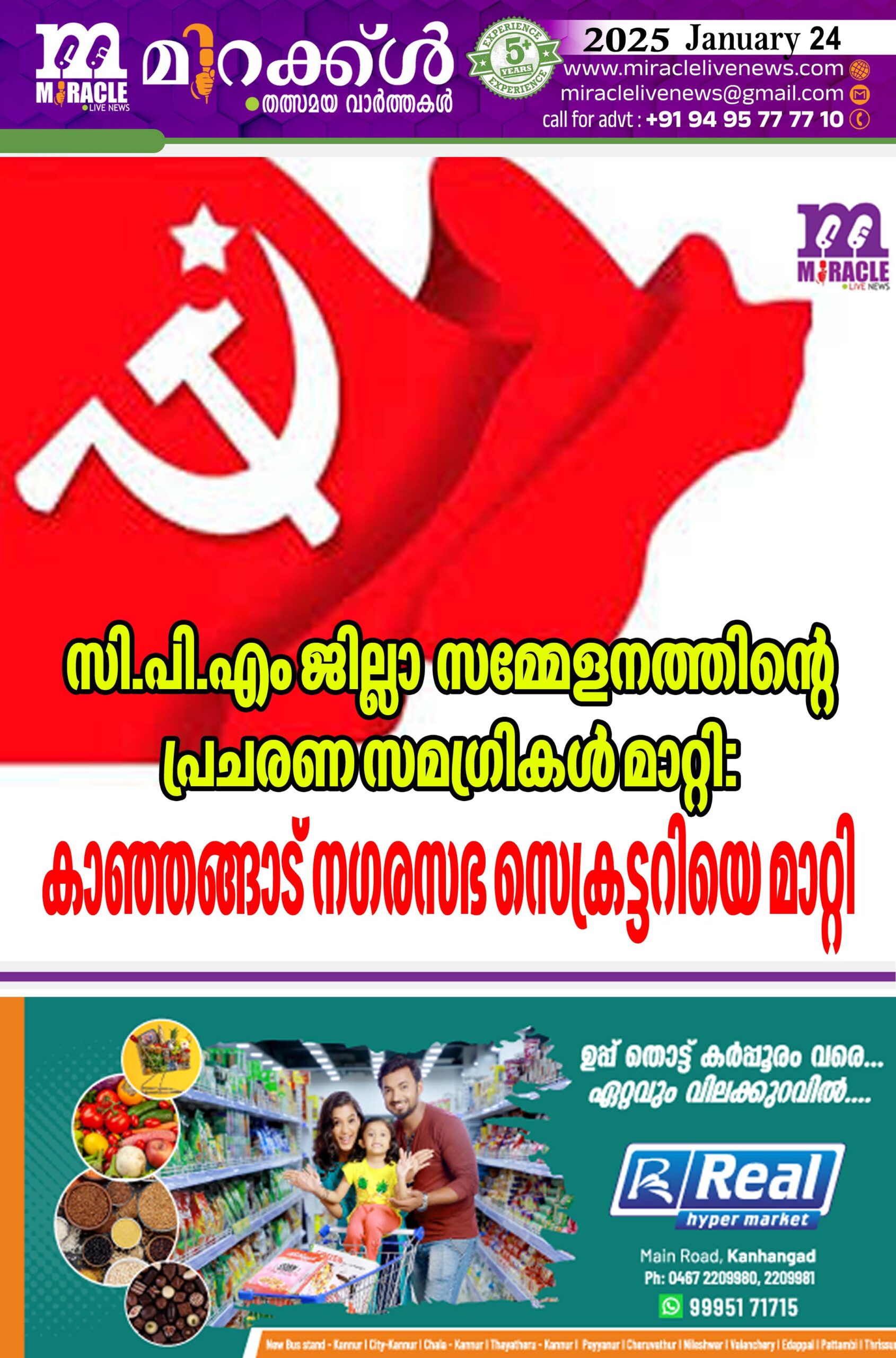 സി.പി.എം ജില്ലാ സമ്മേളനത്തിന്റെ പ്രചരണ സമഗ്രികള്‍ മാറ്റി; കാഞ്ഞങ്ങാട് നഗരസഭ സെക്രട്ടറിയെ മാറ്റി