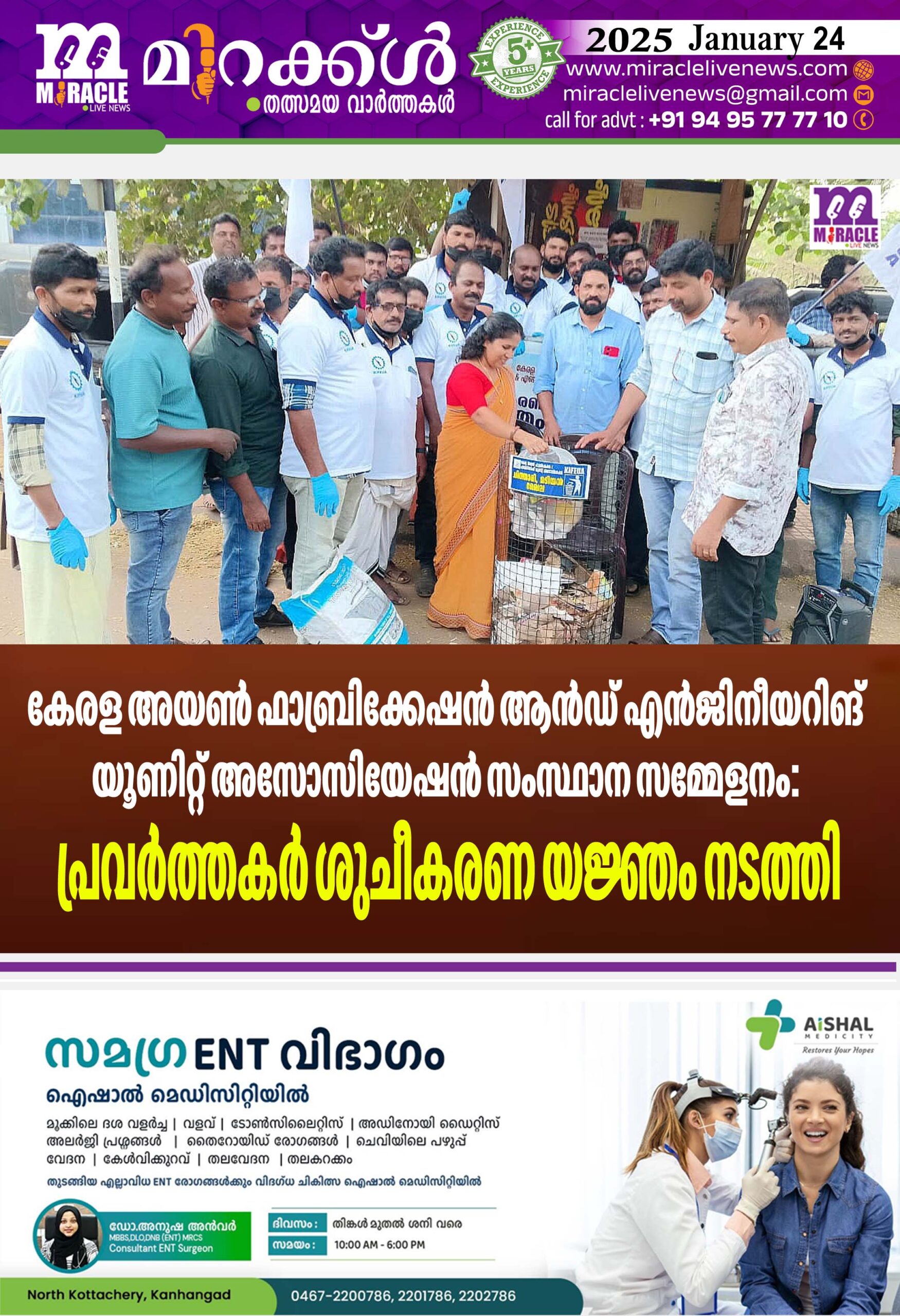 കേരള അയണ് ഫാബ്രിക്കേഷന് ആന്ഡ് എന്ജിനീയറിങ് യൂണിറ്റ് അസോസിയേഷന് സംസ്ഥാന സമ്മേളനം: പ്രവര്ത്തകര് ശുചീകരണ യജ്ഞം നടത്തി