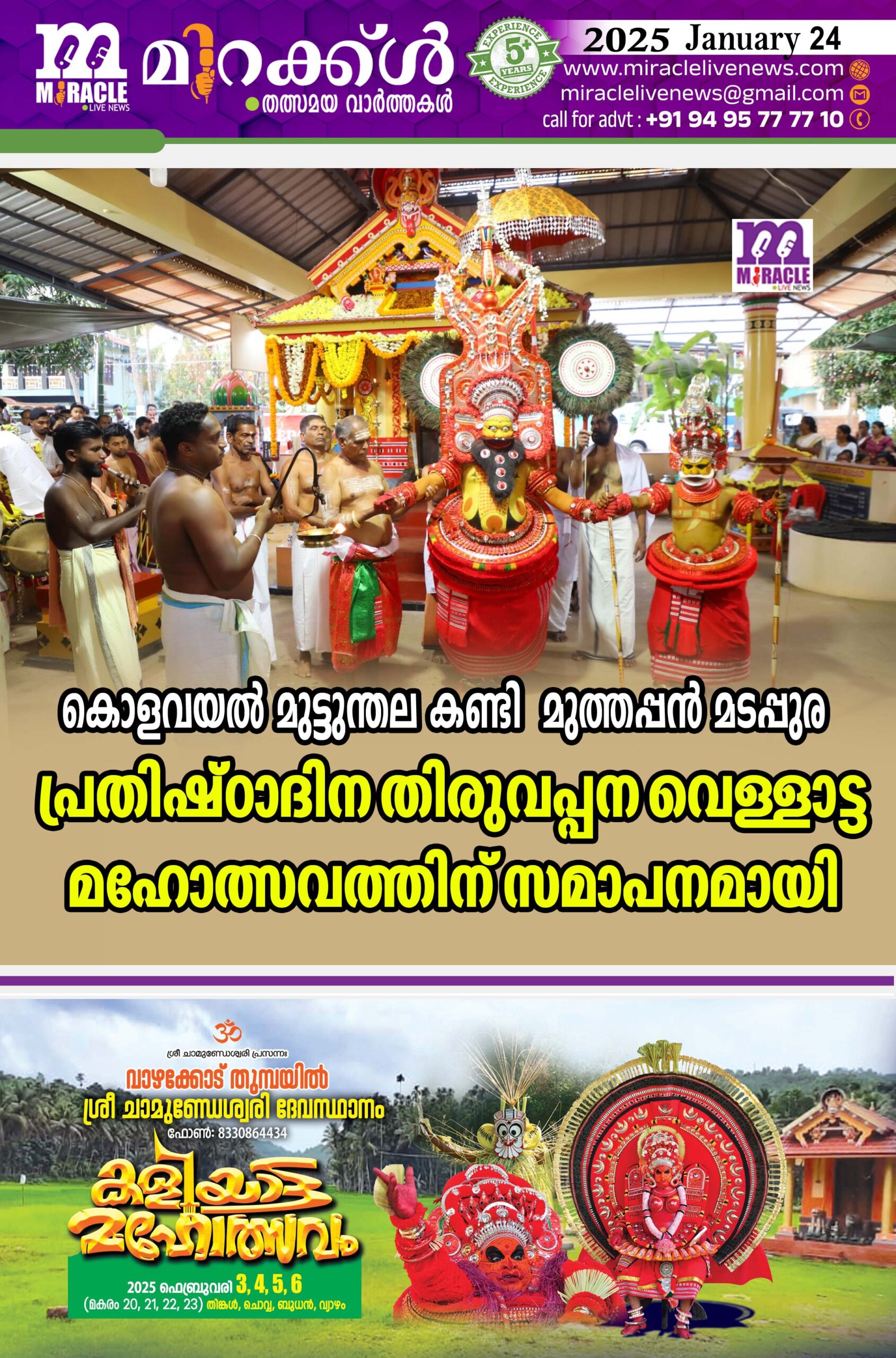 കൊളവയല്‍ മുട്ടുന്തല കണ്ടി മുത്തപ്പന്‍ മടപ്പുര പ്രതിഷ്ഠാദിന തിരുവപ്പന വെള്ളാട്ട മഹോത്സവത്തിന് സമാപനമായി.