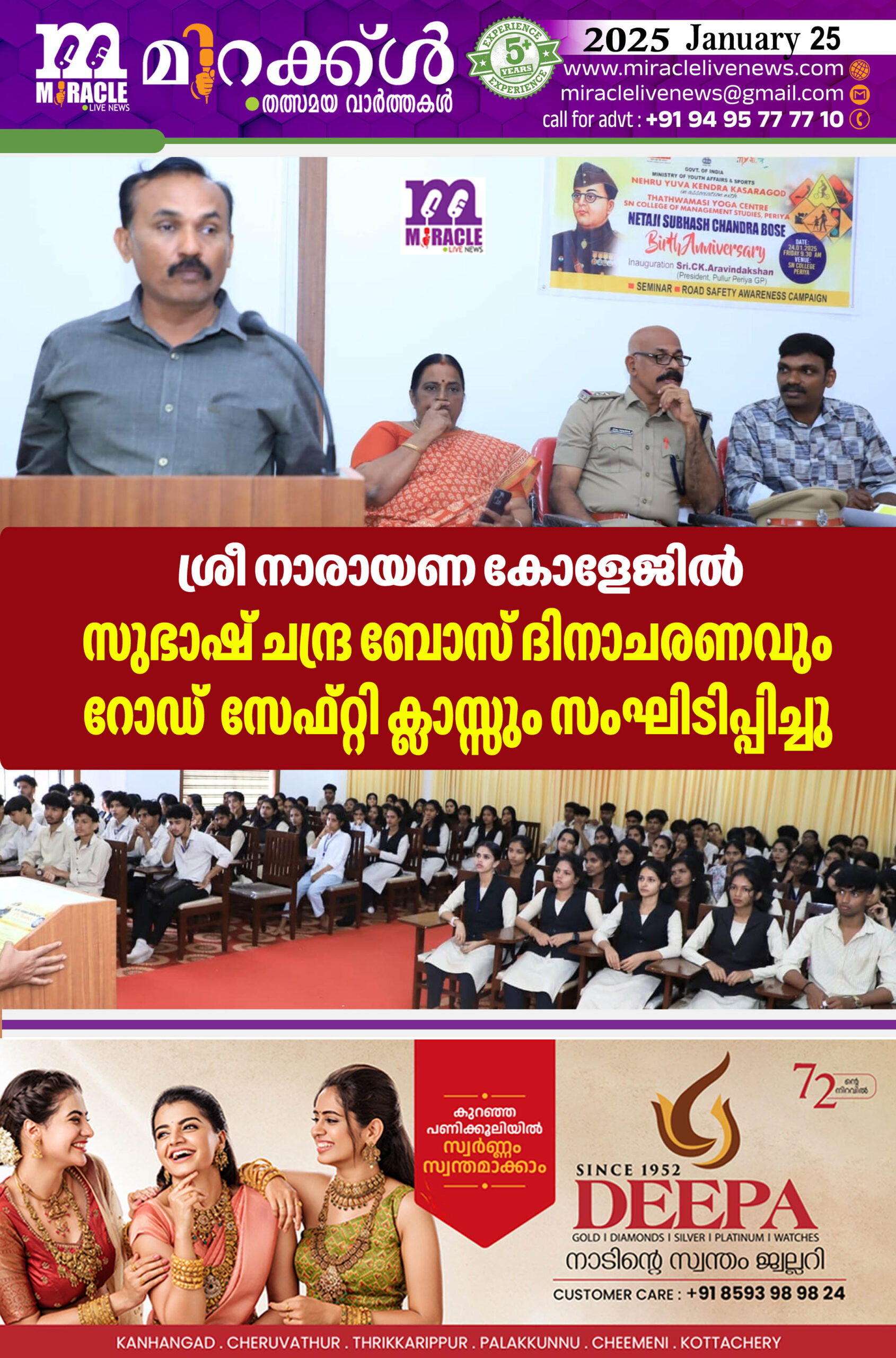 ശ്രീ നാരായണ കോളേജില് സുഭാഷ് ചന്ദ്ര ബോസ് ദിനാചരണവും റോഡ് സേഫ്റ്റി ക്ലാസ്സും സംഘിടിപ്പിച്ചു .