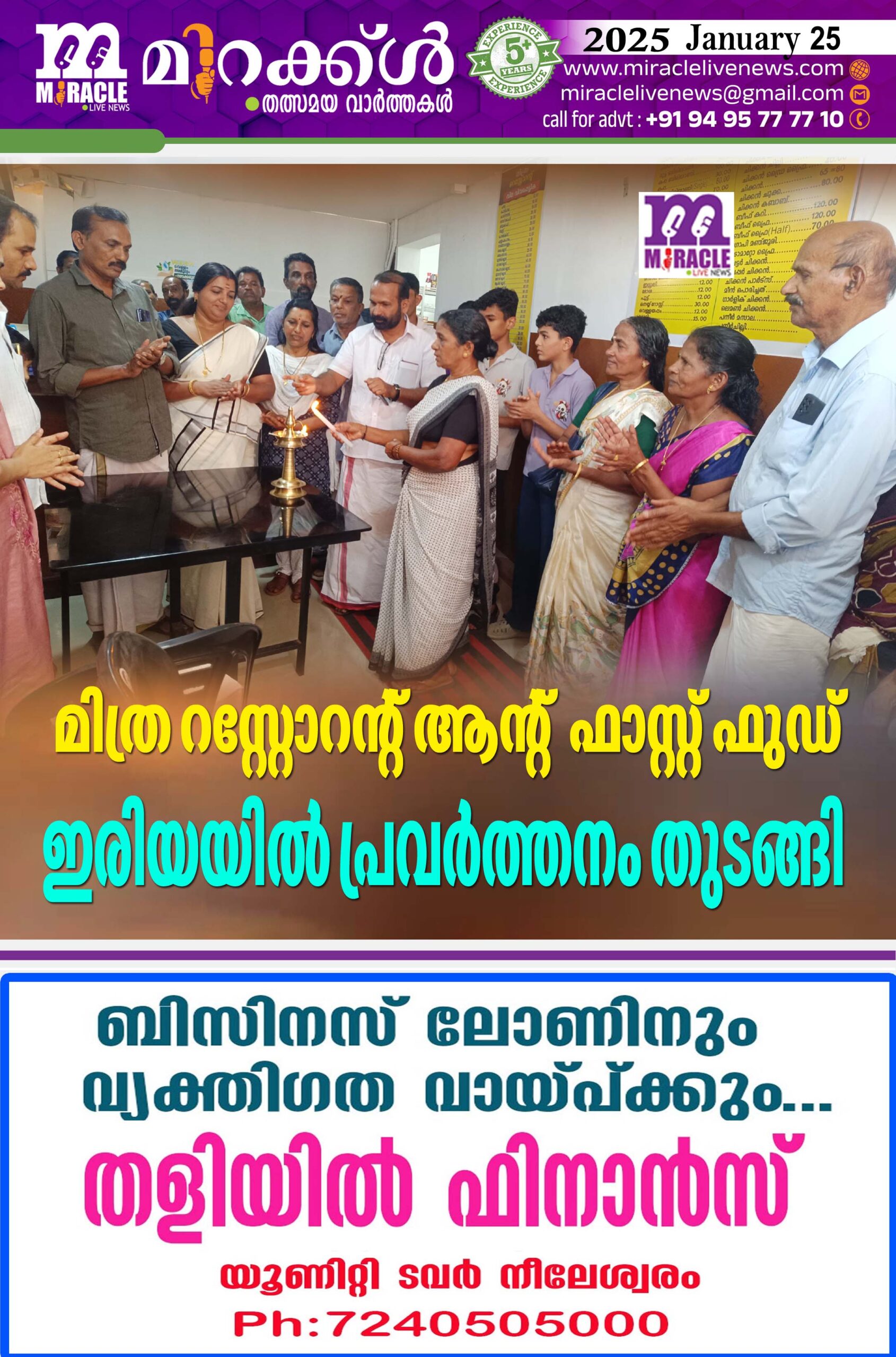 മിത്ര റസ്റ്റോറന്റ് ആന്റ് ഫാസ്റ്റ് ഫുഡ് ഇരിയയില് പ്രവര്ത്തനം തുടങ്ങി