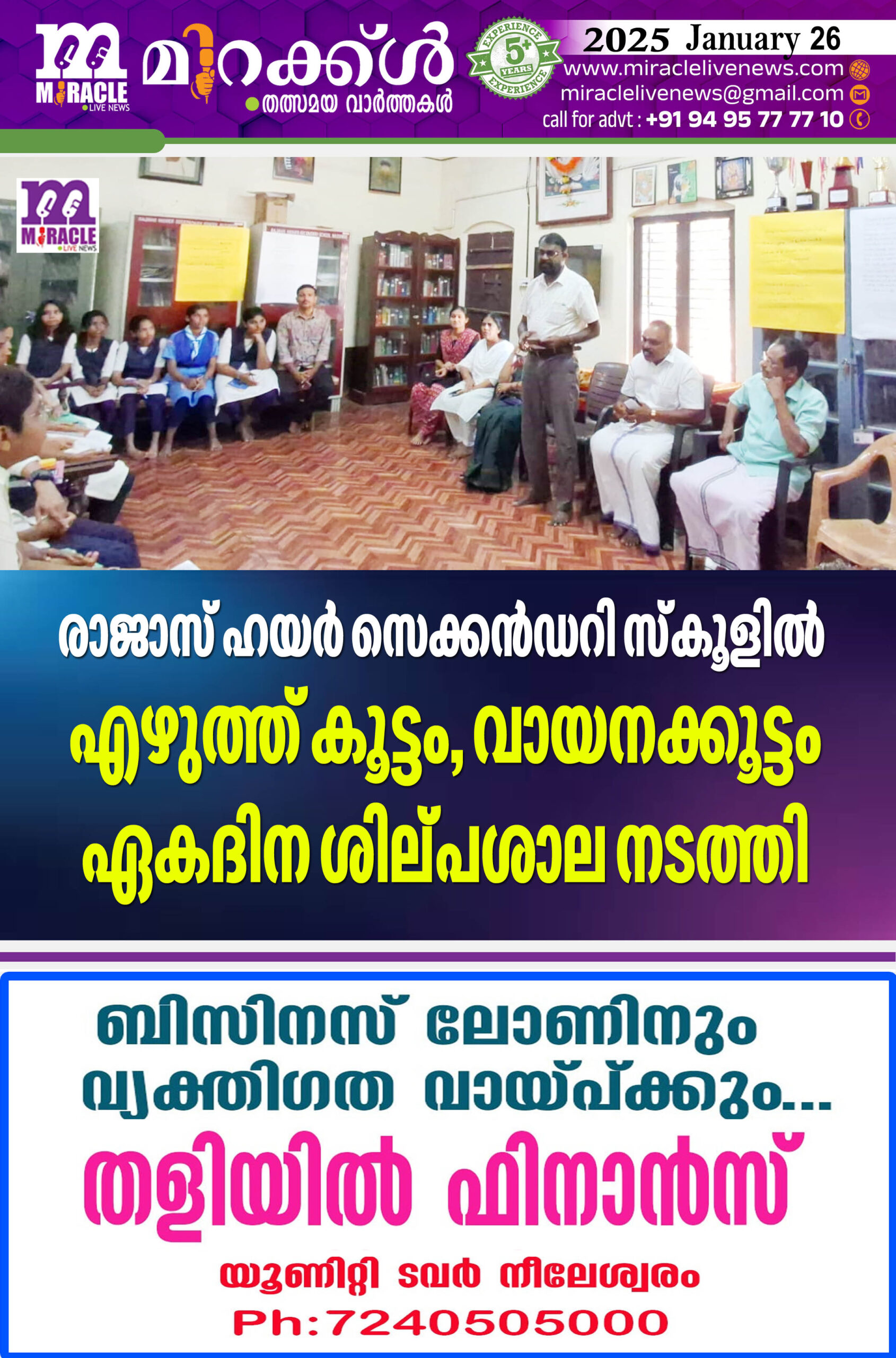 രാജാസ് ഹയര് സെക്കന്ഡറി സ്കൂളില് എഴുത്ത് കൂട്ടം, വായനക്കൂട്ടം ഏകദിന ശില്പശാല നടത്തി