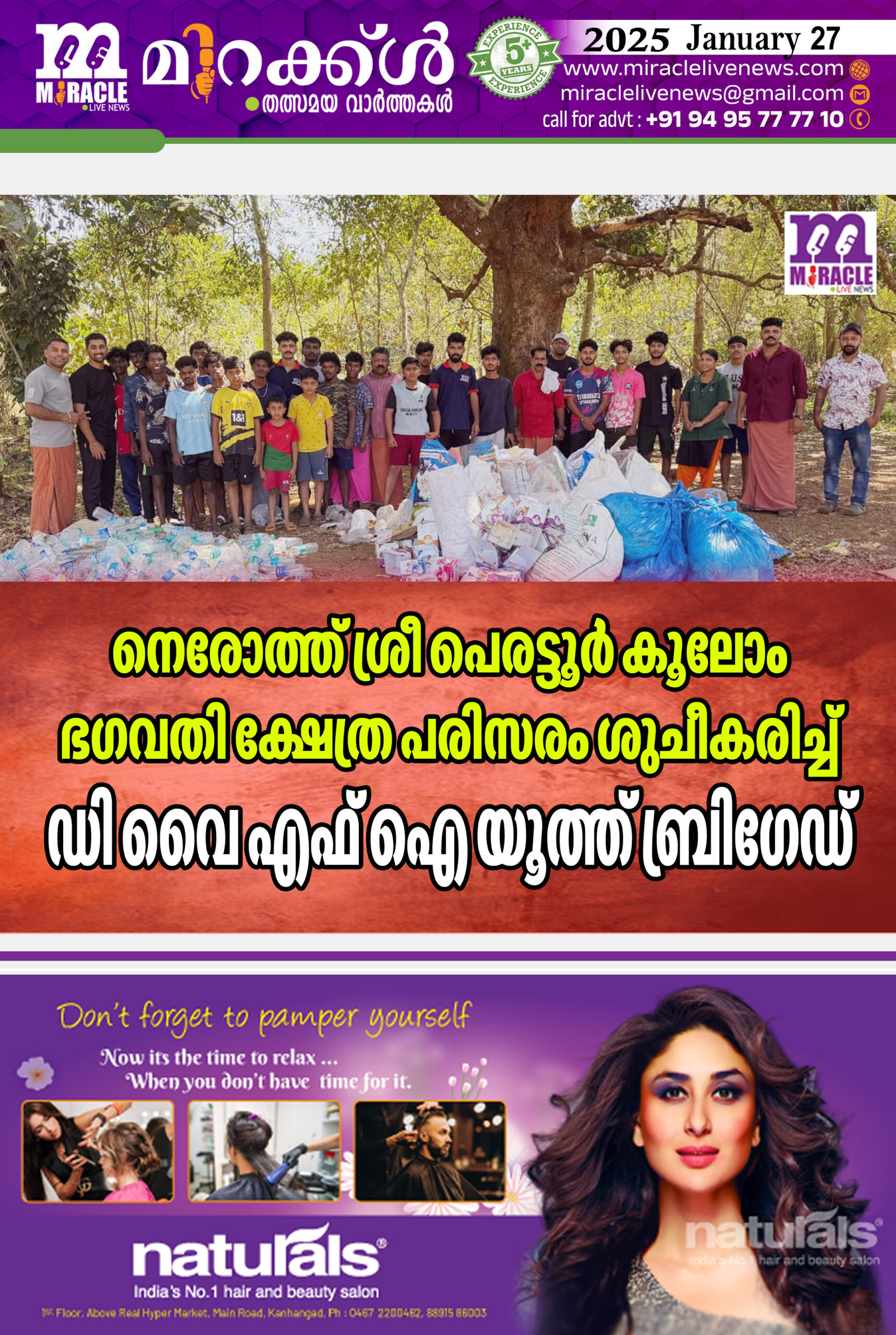 നെരോത്ത് ശ്രീ പെരട്ടൂര് കൂലോം ഭഗവതി ക്ഷേത്ര പരിസരം ശുചീകരിച്ച് ഡി വൈ എഫ് ഐ യൂത്ത് ബ്രിഗേഡ്