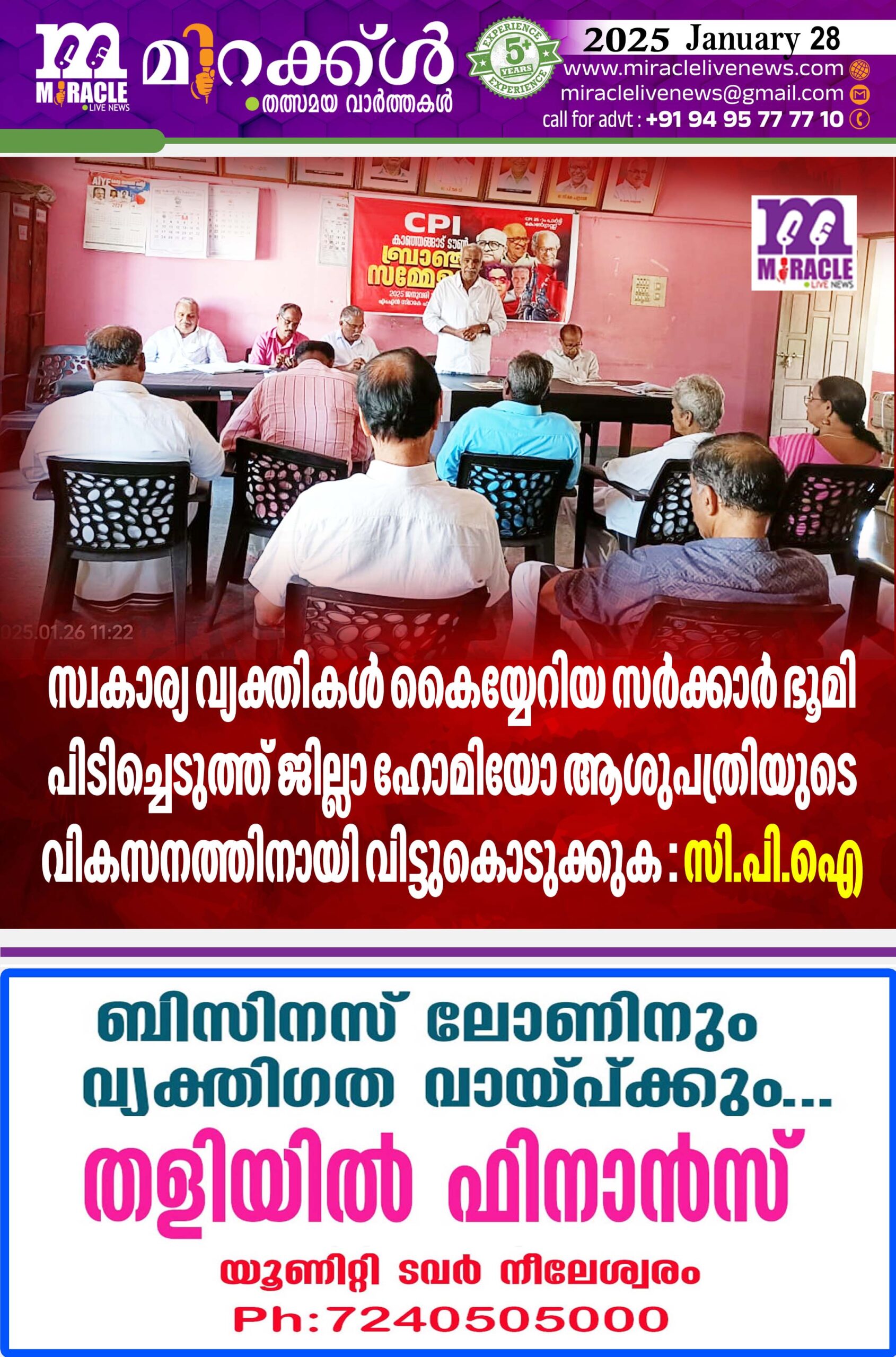 സ്വകാര്യ വ്യക്തികള് കൈയേറിയ സര്ക്കാര് ഭൂമി പിടിച്ചെടുത്ത് ജില്ലാ ഹോമിയോ ആശുപത്രിയുടെ വികസനത്തിനായി വിട്ടുകൊടുക്കുക :സി.പി.ഐ