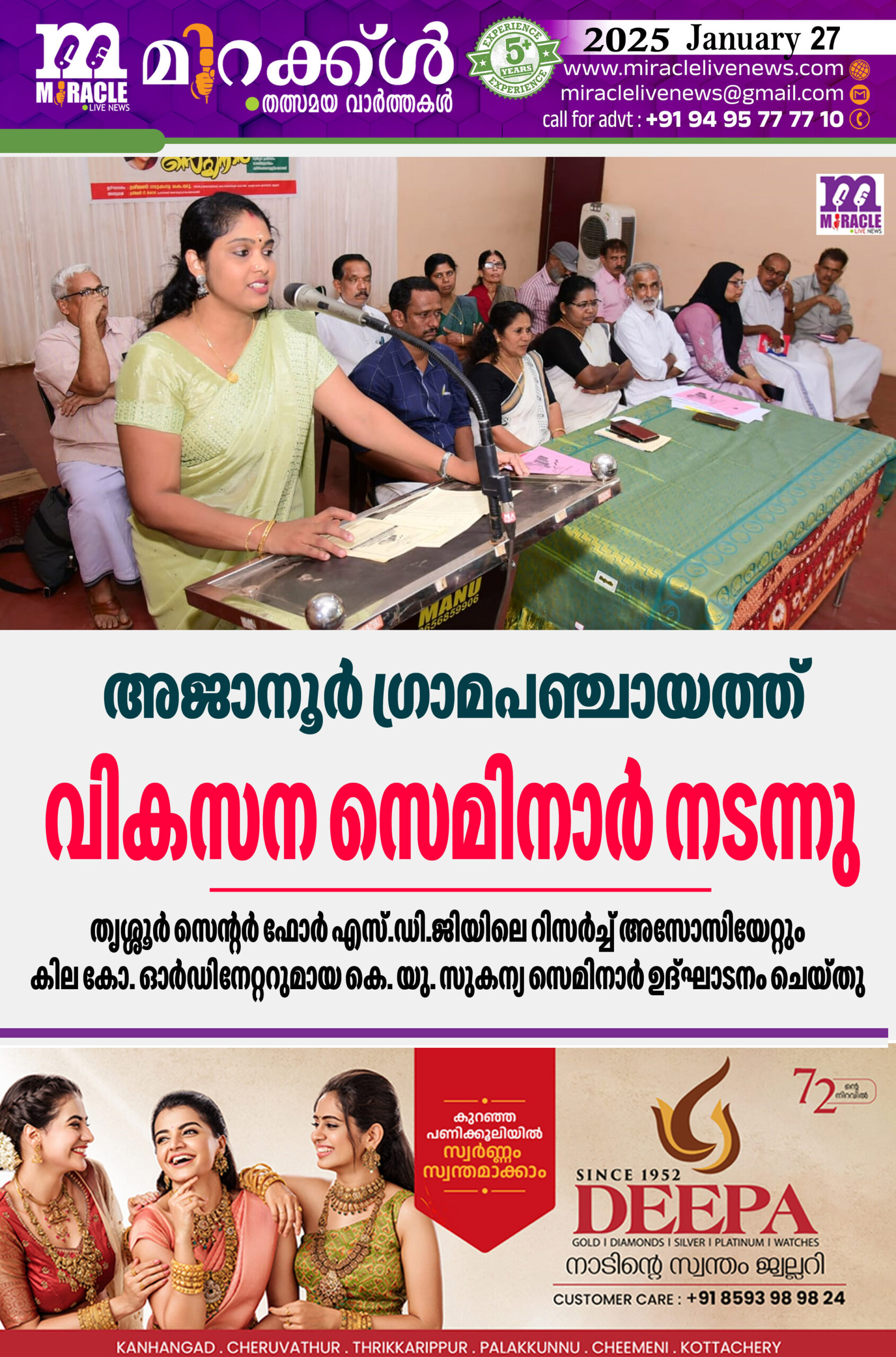 അജാനൂര്‍ ഗ്രാമപഞ്ചായത്ത് വികസന സെമിനാര്‍ നടന്നു; തൃശ്ശൂര്‍ സെന്റര്‍ ഫോര്‍ എസ്.ഡി.ജിയിലെ റിസര്‍ച്ച് അസോസിയേറ്റും കില കോ. ഓര്‍ഡിനേറ്ററുമായ കെ. യു. സുകന്യ സെമിനാര്‍ ഉദ്ഘാടനം ചെയ്തു