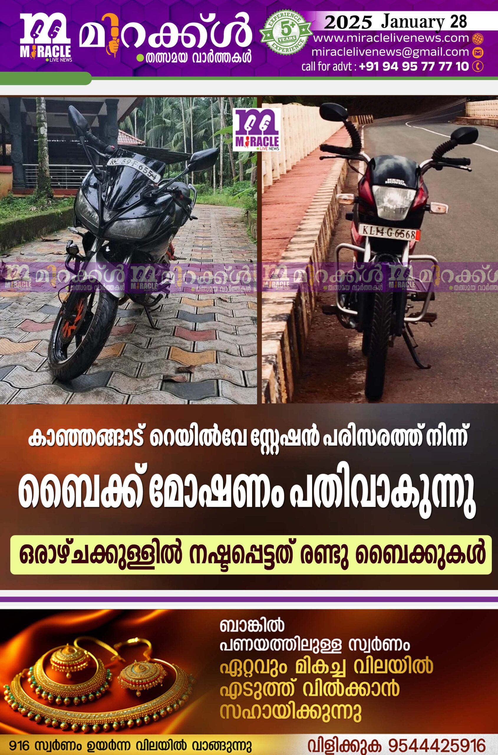 കാഞ്ഞങ്ങാട് റെയില്‍വേ സ്റ്റേഷന്‍ പരിസരത്ത് നിന്ന് ബൈക്ക് മോഷണം പതിവാകുന്നു; ഒരാഴ്ചക്കുള്ളില്‍ നഷ്ടപ്പെട്ടത് രണ്ടു ബൈക്കുകള്‍