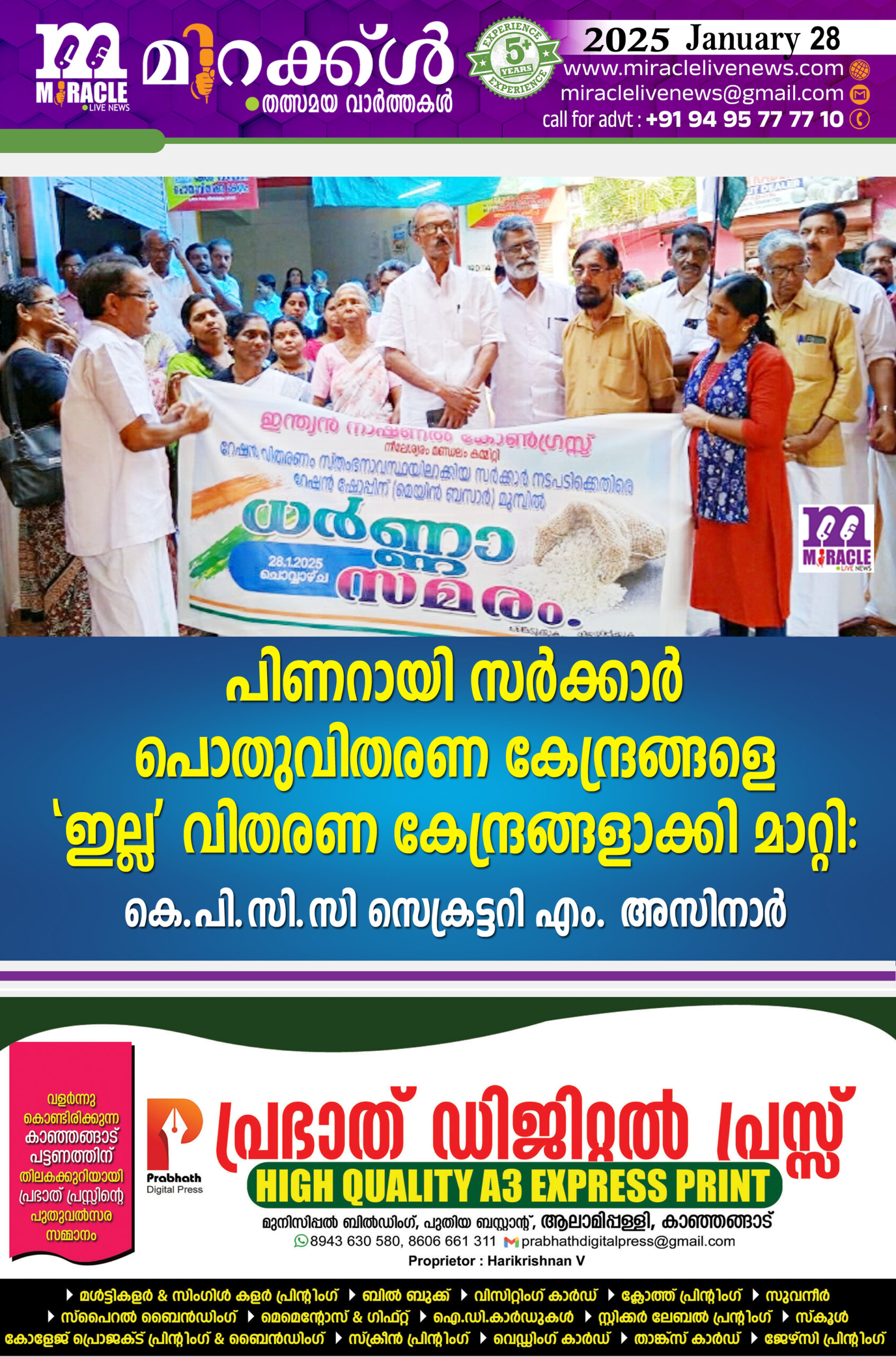 പിണറായി സര്ക്കാര് പൊതുവിതരണ കേന്ദ്രങ്ങളെ ‘ഇല്ല’ വിതരണ കേന്ദ്രങ്ങളാക്കി മാറ്റി : കെ.പി.സി.സി സെക്രട്ടറി എം. അസിനാര്
