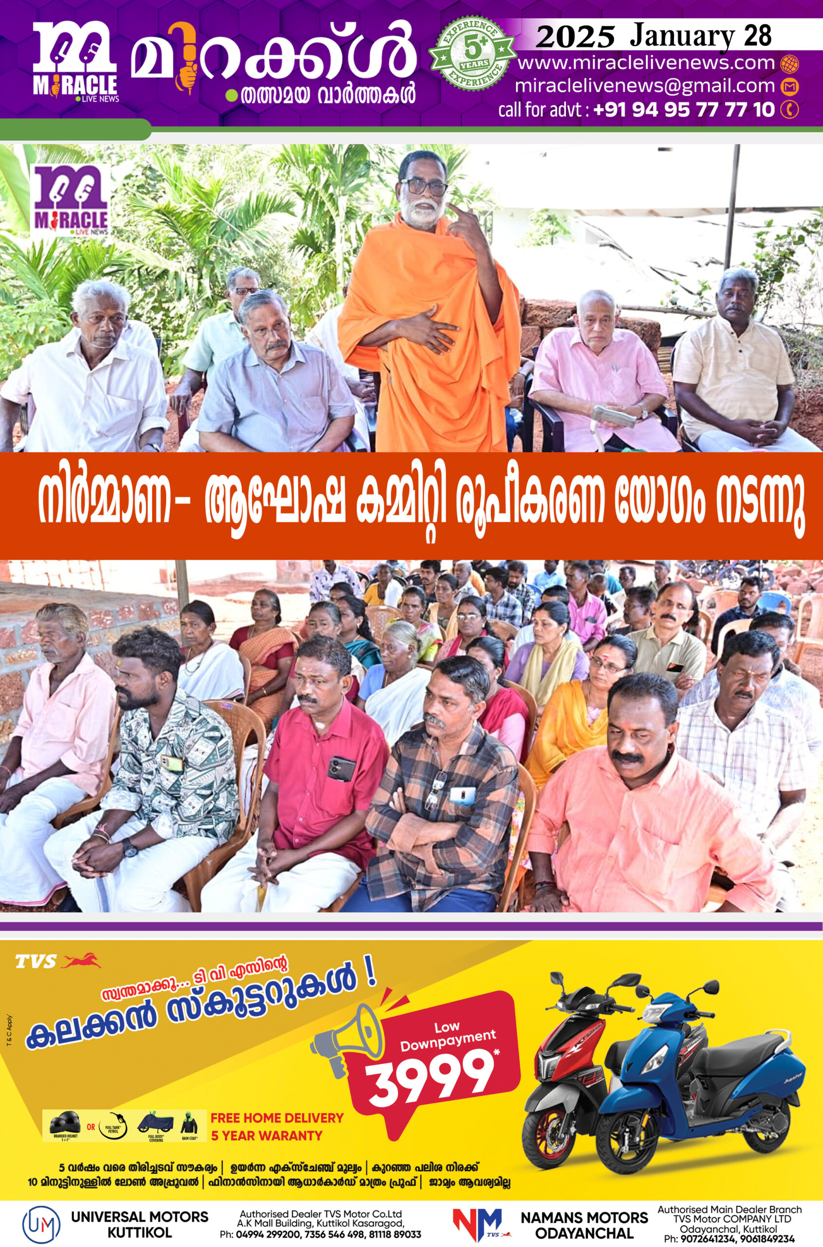 ഏച്ചിക്കാനം: കരക്കക്കാല് ശ്രീമൂനജ്ജന് കരീംചാമുണ്ഡി, വിഷ്ണുമൂര്ത്തി, പഞ്ചുരുളിയമ്മ ദേവസ്ഥാന നിര്മ്മാണ- ആഘോഷ കമ്മിറ്റി രൂപികരണ യോഗം നടന്നു.സംപൂജ്യ സ്വാമി ധര്മ്മ ചൈതന്യ ശങ്കരമഠം ദീപം കൊളുത്തി ഉദ്ഘാടനം ചെയ്തു. കാനത്തില് കണ്ണന് അദ്ധ്യക്ഷത വഹിച്ചു ഡോ.എ സി പത്മനാഭന് നമ്പ്യാര്, ചാത്തുക്കുട്ടി നായര്, കേളു മണിയാണി , പി.കെ നാരായണന്, എ സി വേണുഗോപാലന് നമ്പ്യാര്, കൊരവില് കുഞ്ഞിരാമന്, കൃഷ്ണന് കാരണവര്, ബാലകൃഷ്ണന് കലയപ്പാടി എന്നിവര് സംസാരിച്ചു. പിഡബ്ല്യുഡി എന്ജിനീയര് പി.കെ നാരായണന് കോട്ടപ്പാറ (ചെയര്മാന്), വി.വിജയകുമാര് (ജനറല് കണ്വീനര്) തുടങ്ങി 101 അംഗ കമ്മിറ്റി രൂപികരിച്ചു. ക്ഷേത്ര കമ്മിറ്റി പ്രസിഡന്റ് പി.കൃഷ്ണന് സ്വാഗതവും നിര്മ്മാണ ആഘോഷ കമ്മിറ്റി ട്രഷറര് കെ സി മോഹനന് നന്ദിയും പറഞ്ഞു. കട്ടിളവെപ്പ് കര്മ്മം ഫെബ്രുവരി25ന്നടക്കും.