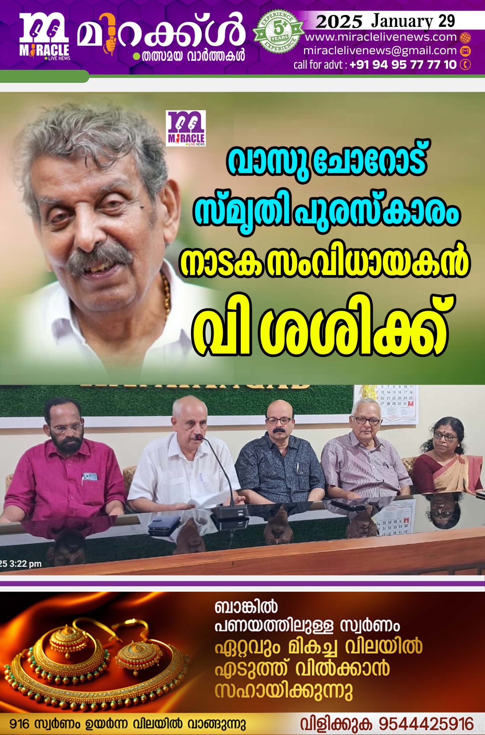 വാസു ചോറോട് സ്മൃതി പുരസ്കാരം നാടക സംവിധായകന് വി ശശിക്ക്