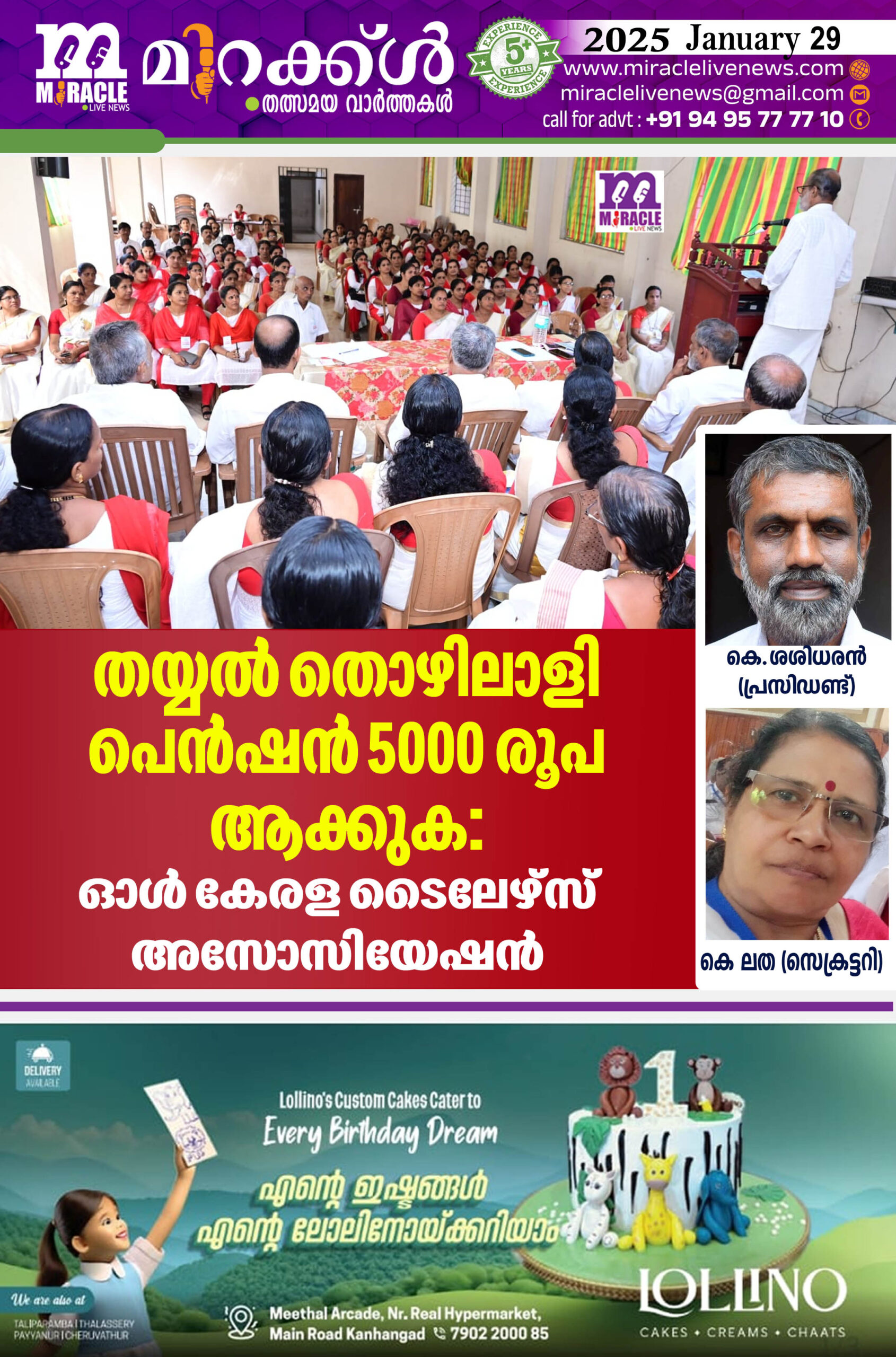തയ്യല് തൊഴിലാളി പെന്ഷന് 5000 രൂപ ആക്കുക: ഓള് കേരള ടൈലേഴ്സ് അസോസിയേഷന്