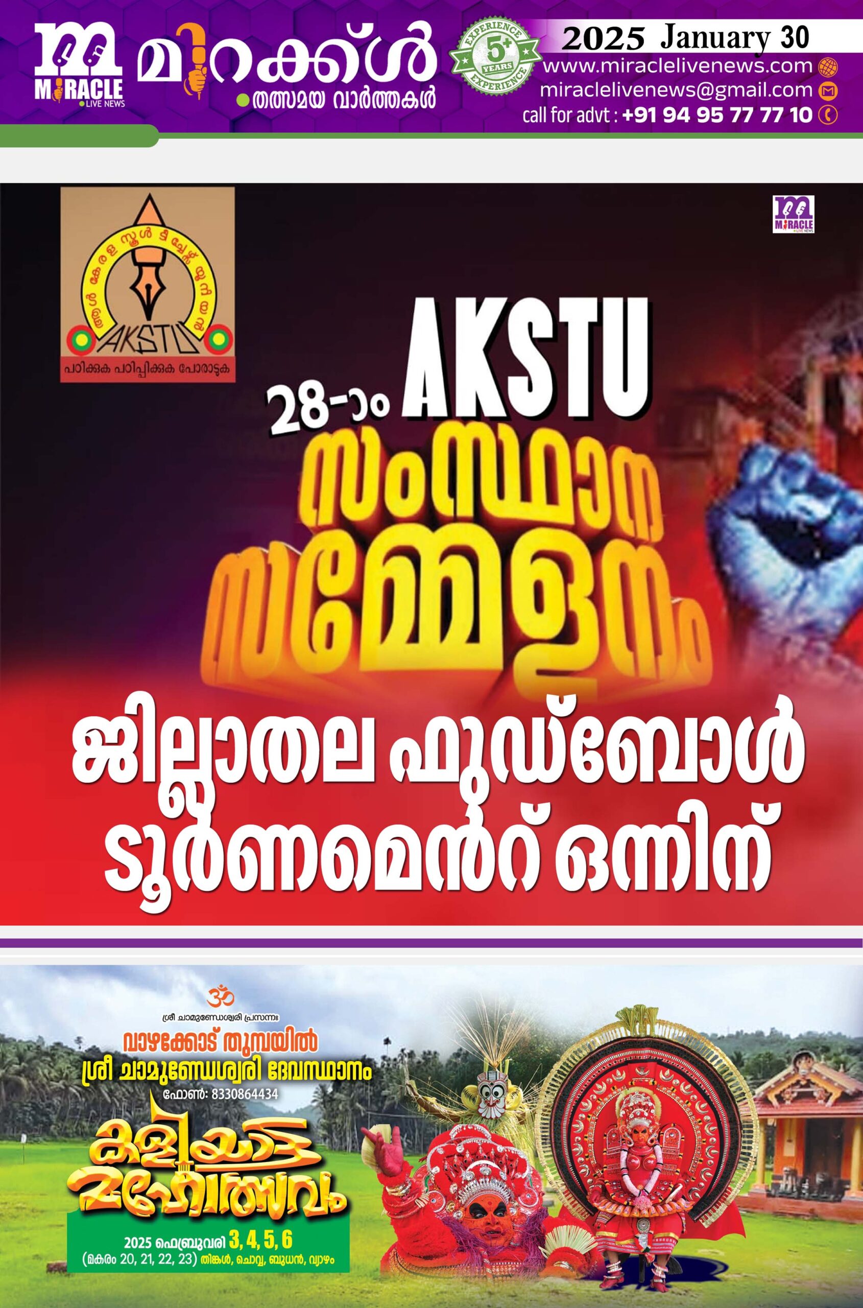 എ.കെ എസ്.ടി.യു സംസ്ഥാന സമ്മേളനം: ജില്ലാതല ഫുഡ്ബോള് ടൂര്ണമെന്റ് ഒന്നിന്