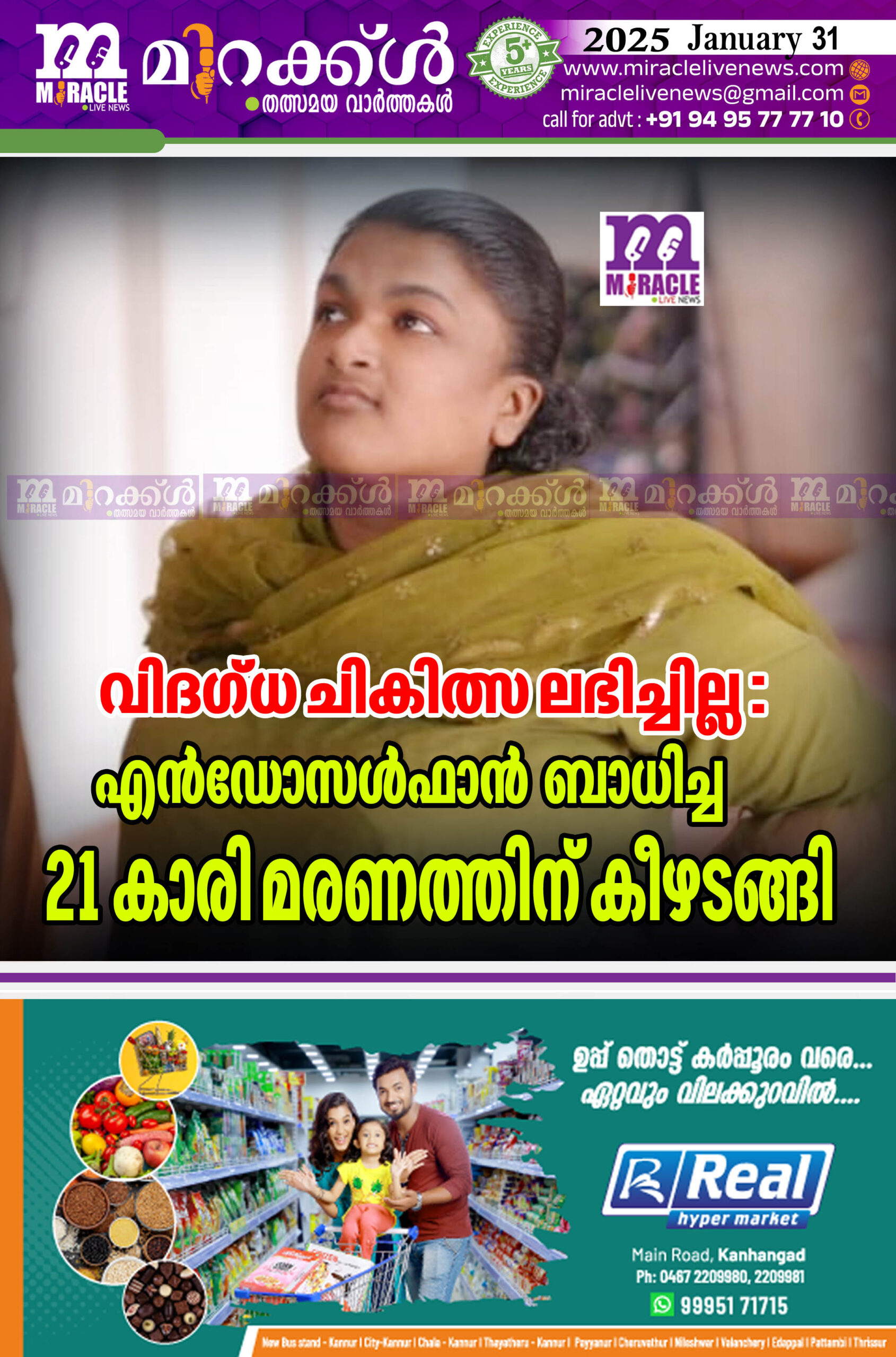 വിദഗ്ധ ചികിത്സ ലഭിച്ചില്ല : എന്ഡോസള്ഫാന് ബാധിച്ച 21 കാരി മരണത്തിന് കീഴടങ്ങി