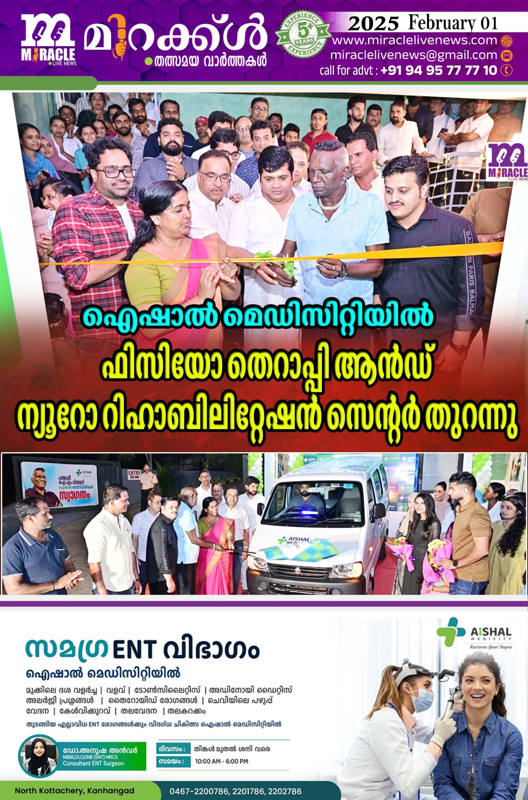 ഐഷാല് മെഡിസിറ്റിയില് ഫിസിയോ തെറാപ്പി ആന്ഡ് ന്യൂറോ റിഹാബിലിറ്റേഷന് സെന്റര് തുറന്നു