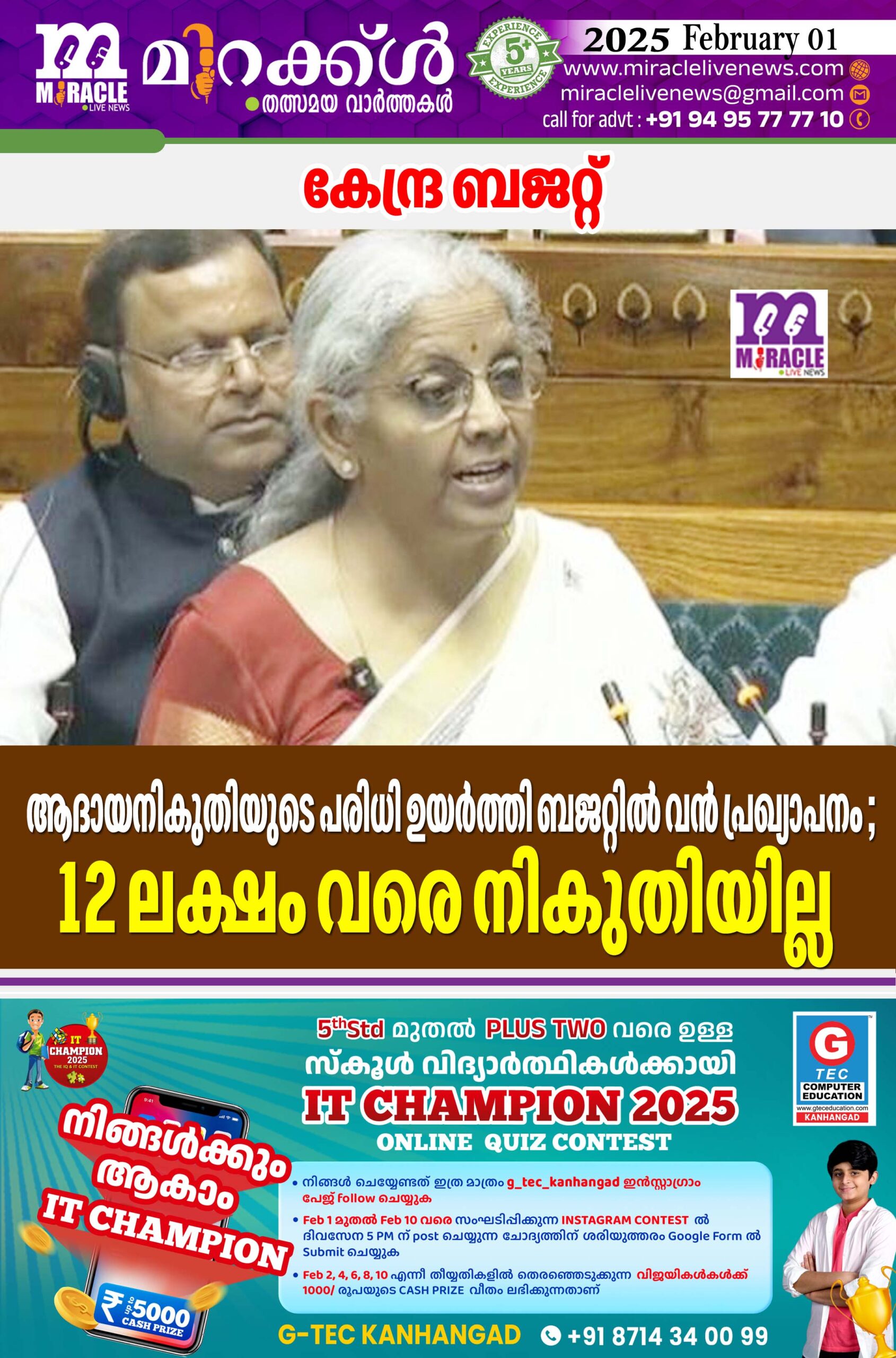 അത് ഒരു ലക്ഷമാക്കി. പുതിയ ആദായനികുതി ബില് അടുത്തയാഴ്ച അവതരിപ്പിക്കും. വാടക ഇനത്തില് ടിഡിഎസിനുള്ള വാര്ഷിക പരിധി 2.4 ലക്ഷത്തില് നിന്നും ആറുലക്ഷമാക്കി ഉയര്ത്തുകയും ചെയ്തിട്ടുണ്ട്. 2025 ലെ ധനക്കമ്മി 4.8 ശതമാനമായി പുനര്നിര്മ്മിച്ചിട്ടുണ്ട്.