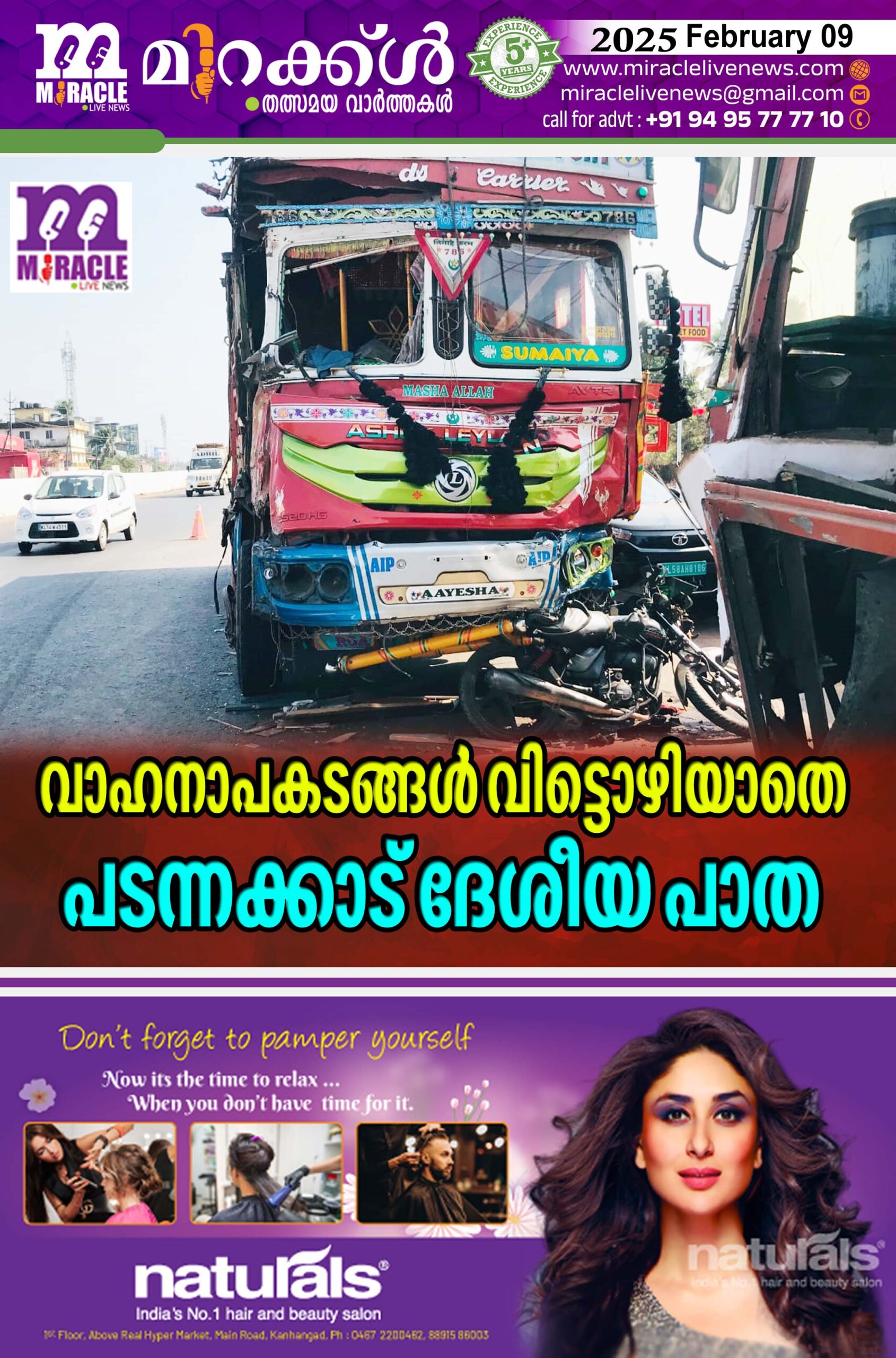 കാഞ്ഞങ്ങാട്: വാഹനാപകടങ്ങള് വിട്ടൊഴിയാത്തൊരിടമായി പടന്നക്കാട് ദേശീയ പാത മാറിയിരിക്കുകയാണ്. കഴിഞ്ഞ കുറച്ച് കാലങ്ങളായി പടന്നക്കാട്, ഐ ങ്ങോത്ത് ദേശീയ പാതകളില് അപകടങ്ങള് വിട്ടൊഴിയാതിരിക്കുകയാണ്. പടന്നക്കാട് മേല്പാലവും അതിനോട് ചേര്ന്ന് കിടക്കുന്ന ദേശീയപാതയിലുമാണ് കൂടുതല് അപകട പരമ്പരങ്ങളുണ്ടായിരിക്കുന്നത്. വെള്ളി രാത്രി കാഞ്ഞങ്ങാട് പഴയകടപ്പുറം സ്വദേശി ആഷിഖും ബാംഗ്ലൂര് സ്വദേശി തന്വീര് പാഷയും രണ്ട് ദേശീയ പാത ലോറികള്ക്കിടയില് പ്പെട്ട് മരിച്ചതോടെയാണ് വീണ്ടും അപകട മരണകുരുക്കായി പടന്നക്കാട് മാറുകയാണ്.