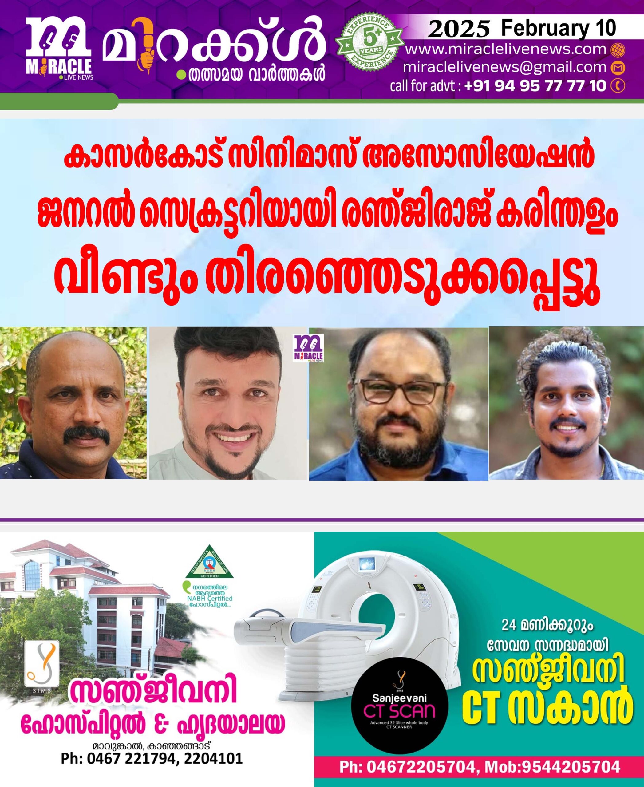 കാസര്കോട് സിനിമാസ് അസോസിയേഷന് ജനറല് സെക്രട്ടറിയായി രഞ്ജിരാജ് കരിന്തളം വീണ്ടും തിരഞ്ഞെടുക്കപ്പെട്ടു