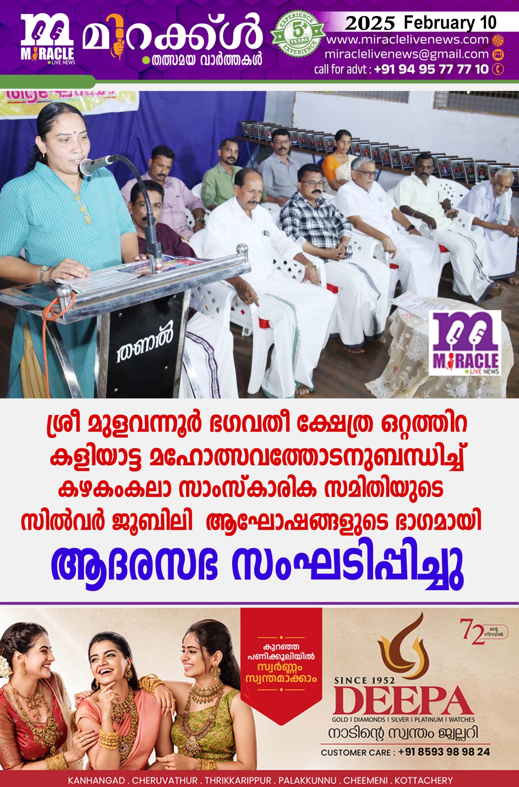 ശ്രീ മുളവന്നൂര് ഭഗവതീ ക്ഷേത്ര ഒറ്റത്തിറ കളിയാട്ട മഹോത്സവത്തോടനുബന്ധിച്ച് കഴകംകലാ സാംസ്കാരിക സമിതിയുടെ സില്വര് ജൂബിലി ആഘോഷങ്ങളുടെ ഭാഗമായി ആദരസഭ സംഘടിപ്പിച്ചു