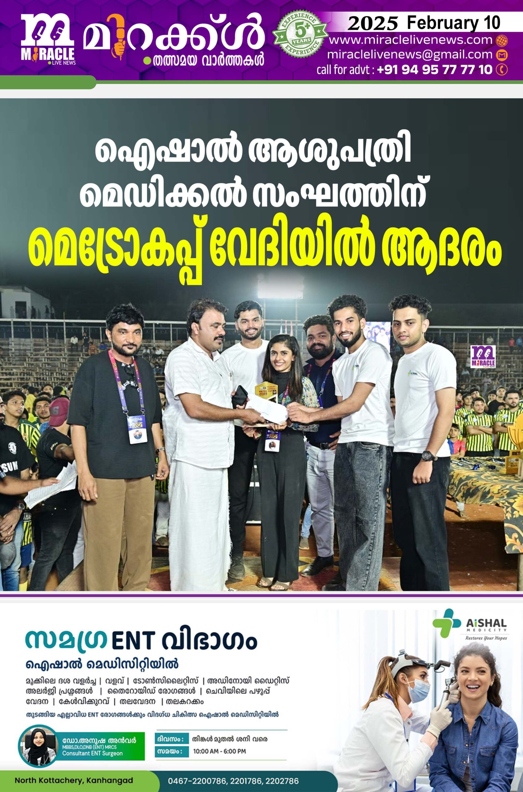 ഐഷാല് ആശുപത്രി മെഡിക്കല് സംഘത്തിന് മെട്രോകപ്പ് വേദിയില് ആദരം
