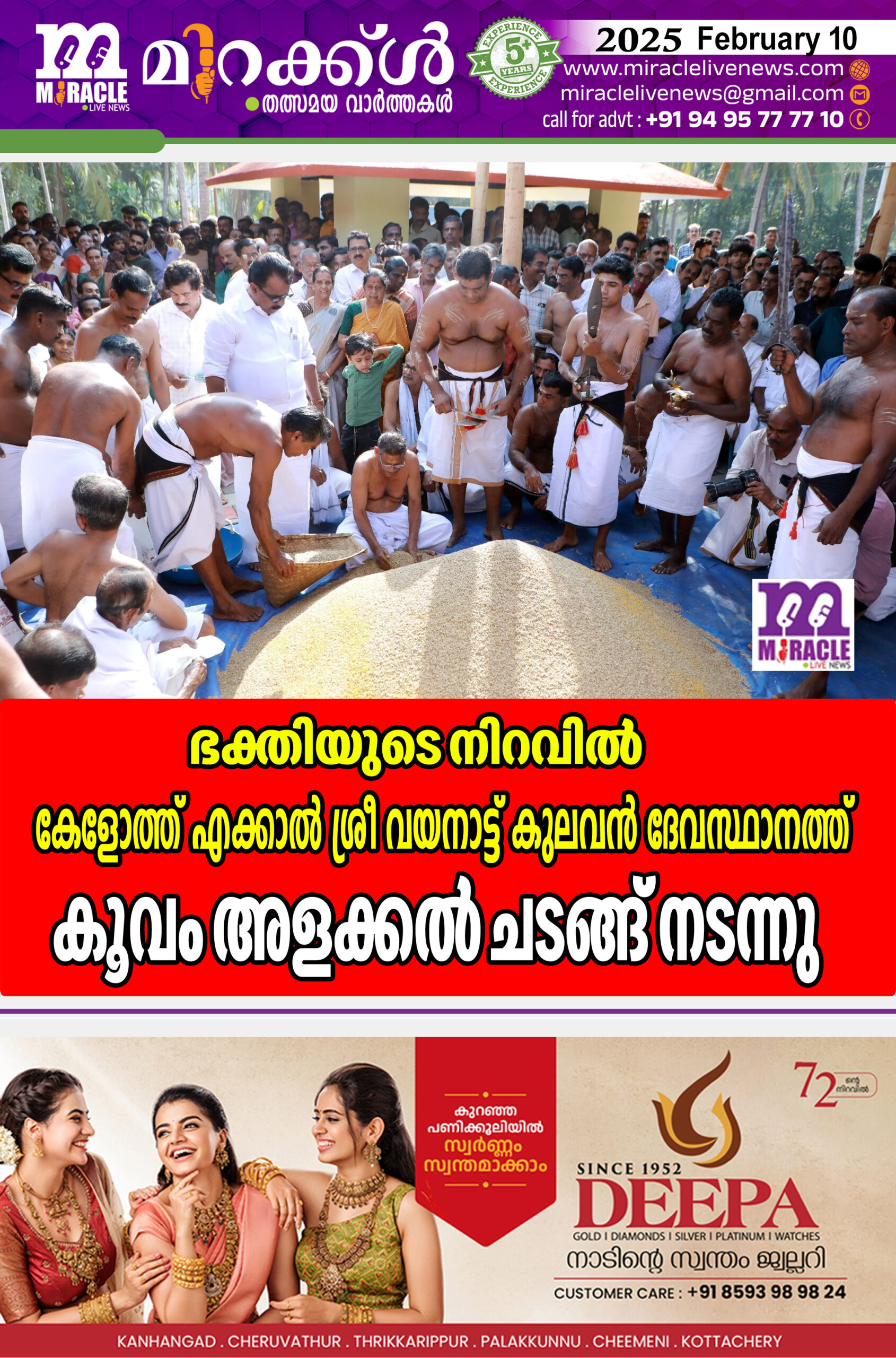 ഭക്തിയുടെ നിറവില് കേളോത്ത് എക്കാല് ശ്രീ വയനാട്ട് കുലവന് ദേവസ്ഥാനത്ത് കൂവം അളക്കല് ചടങ്ങ് നടന്നു