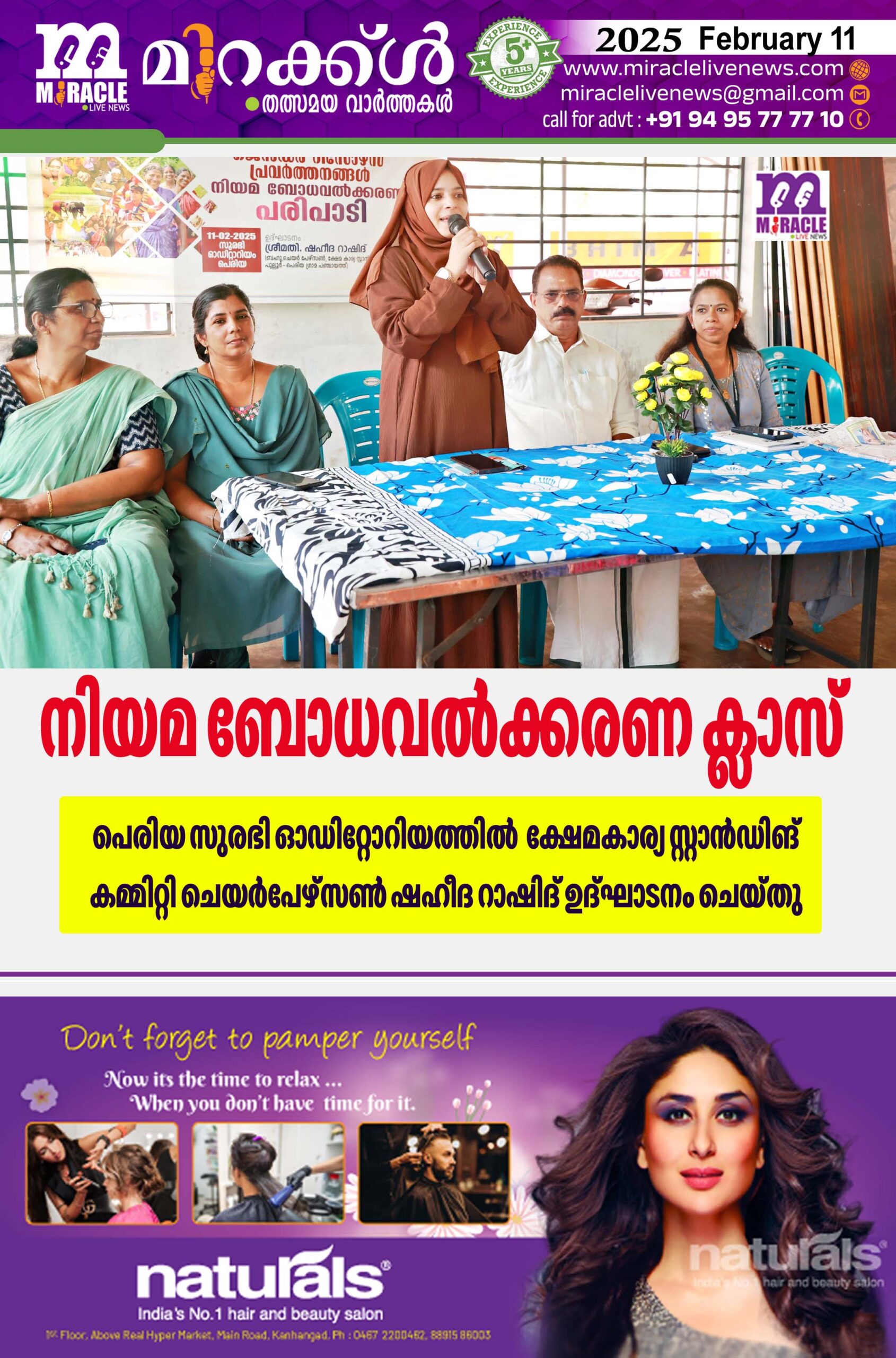 നിയമ ബോധവല്ക്കരണ ക്ലാസ് സംഘടിപ്പിച്ചു; പെരിയ സുരഭി ഓഡിറ്റോറിയത്തില് ക്ഷേമകാര്യ സ്റ്റാന്ഡിങ് കമ്മിറ്റി ചെയര്പേഴ്സണ് ഷഹീദ റാഷിദ് ഉദ്ഘാടനം ചെയ്തു