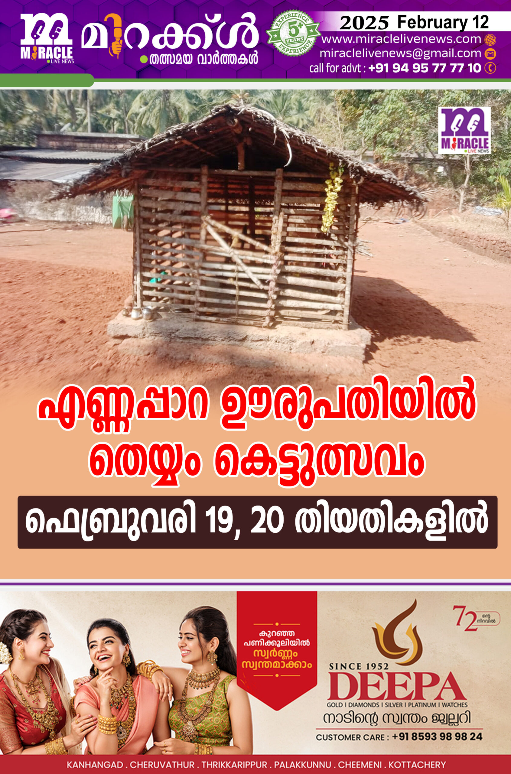 എണ്ണപ്പാറ ഊരുപതിയില് തെയ്യം കെട്ടുത്സവം ഫെബ്രുവരി 19, 20 തിയതികളില്
