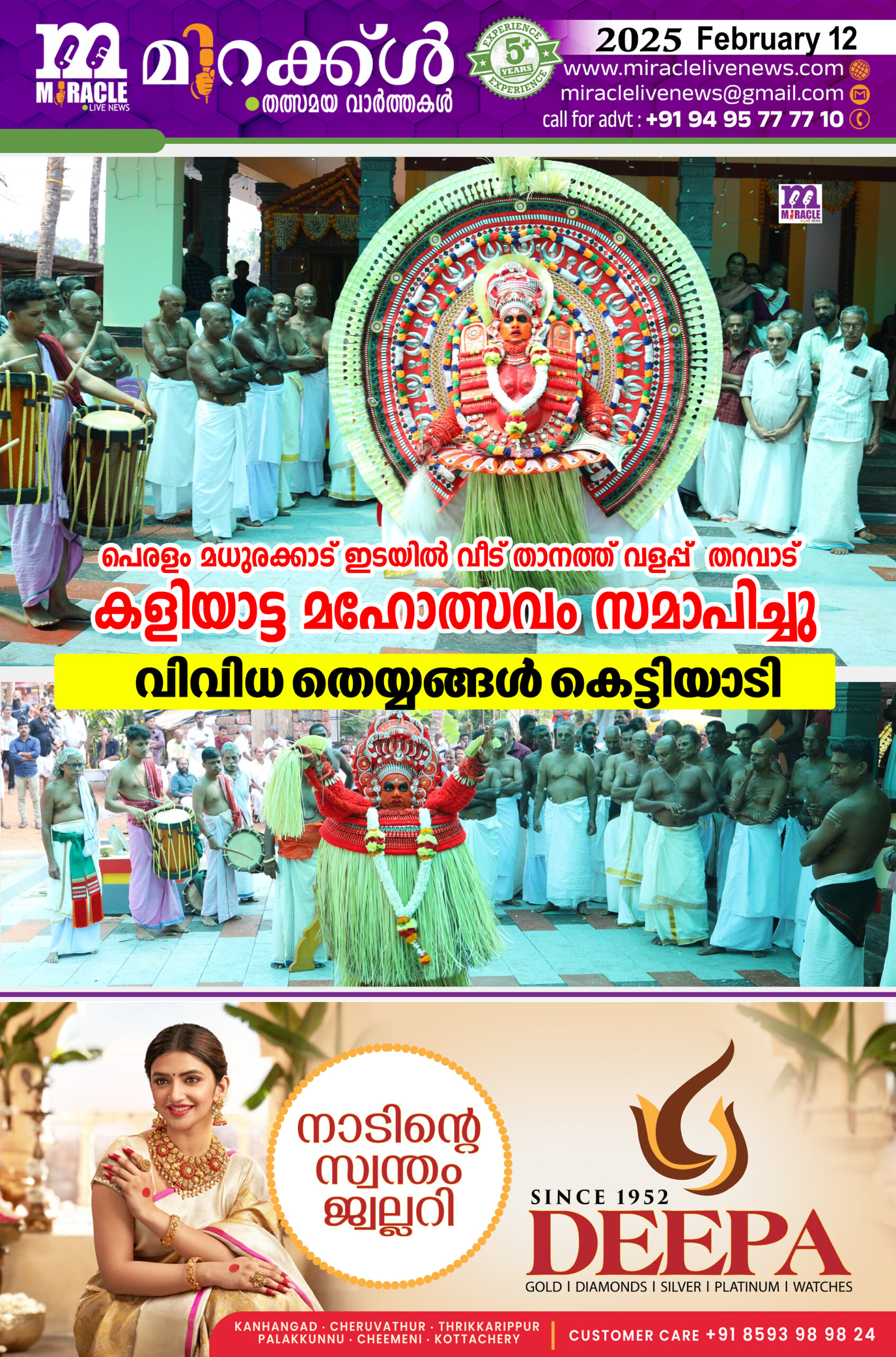 പെരളം മധുരക്കാട് ഇടയില് വീട് താനത്ത് വളപ്പ് തറവാട് കളിയാട്ട മഹോത്സവം സമാപിച്ചു. വിവിധ തെയ്യങ്ങള് കെട്ടിയാടി