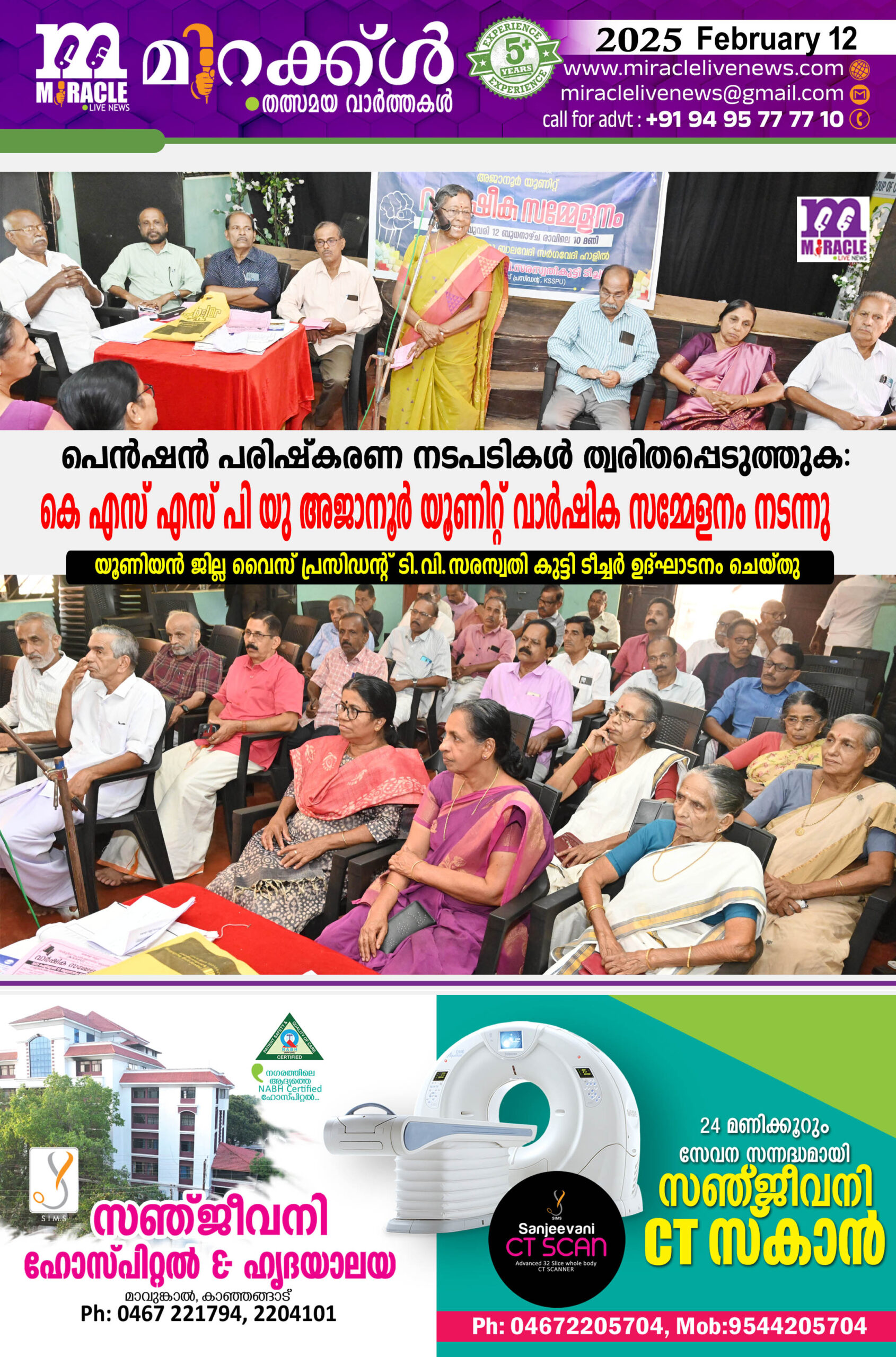 അജാനൂര്:പെന്ഷന് പരിഷ്കരണ നടപടികള് ത്വരിതപ്പെടുത്തി അടിയന്തിരമായും യൂണിയന് ആവശ്യപ്പെടുന്ന ആനുകൂല്യങ്ങള് ഉടനെ പ്രാബല്യത്തില് വരുത്തണമെന്നും കേരള സ്റ്റേറ്റ് സര്വ്വീസ് പെന്ഷനേഴ്സ് യൂണിയന് അജാനൂര് യൂണിറ്റ് വാര്ഷിക സമ്മേളനം സര്ക്കാറിനോട് ആവശ്യപ്പെട്ടു.